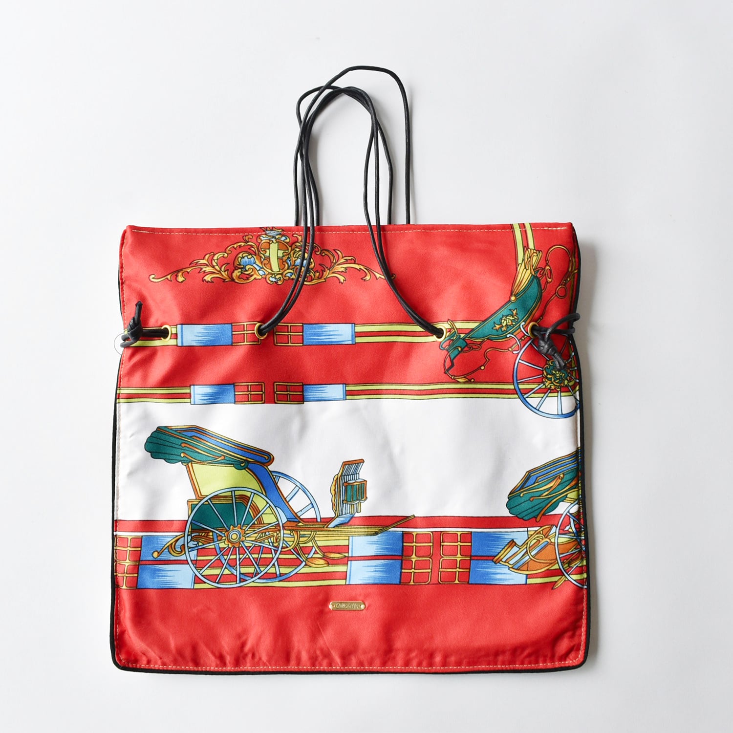 手持ちトート、ショルダーバッグ、巾着風バッグの3WAYで使えるバッグ。