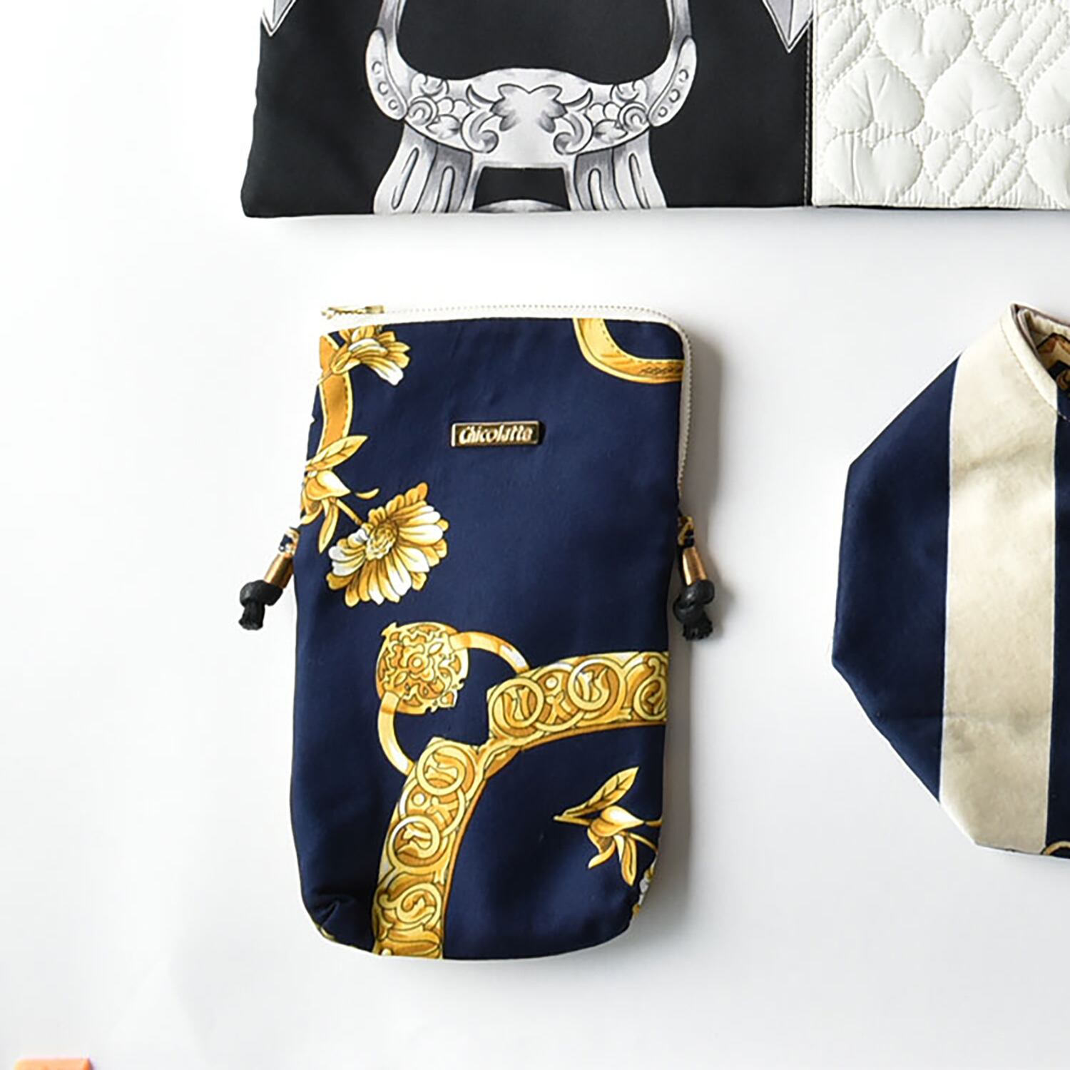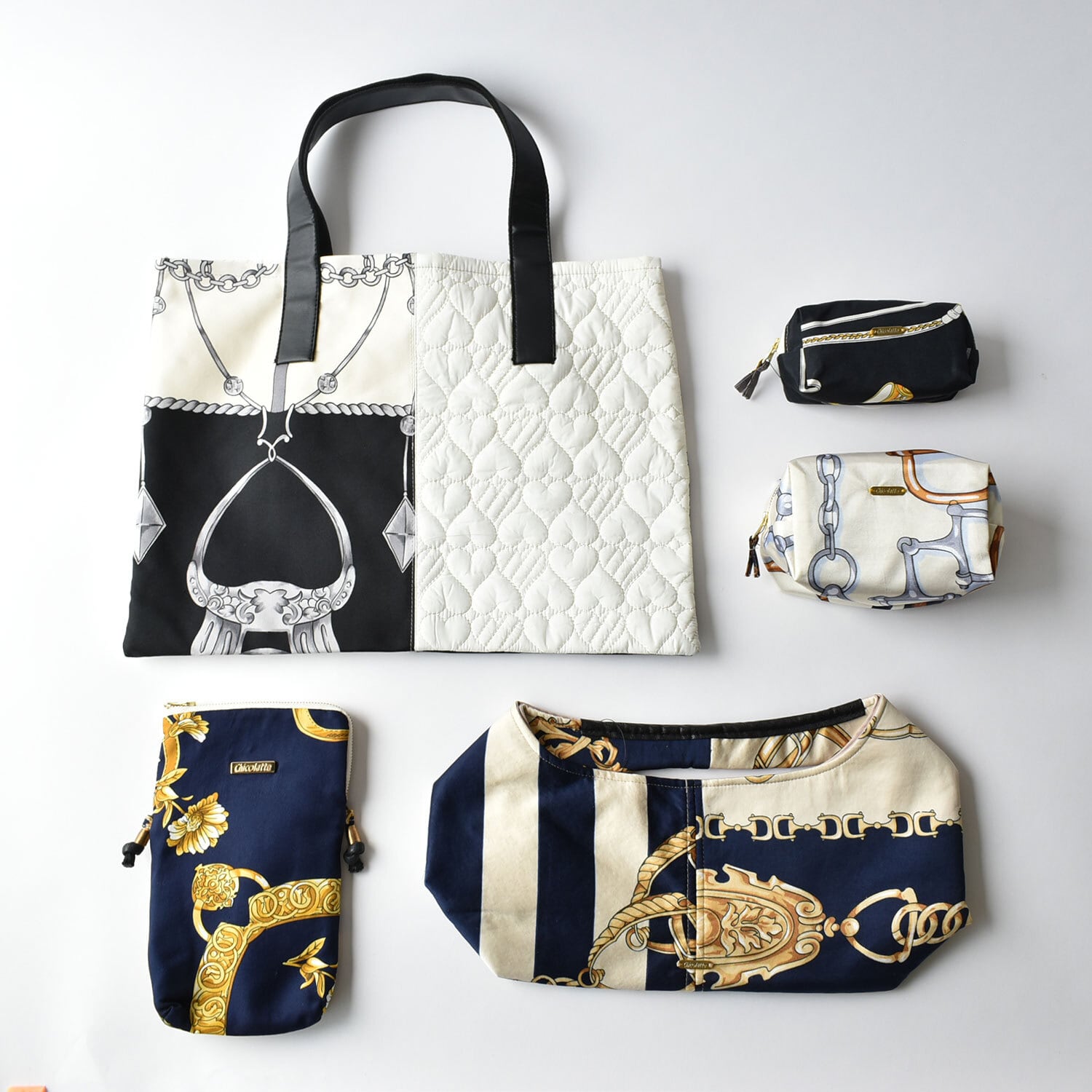 スカーフと異素材でお作りした、福袋限定トートバッグ。