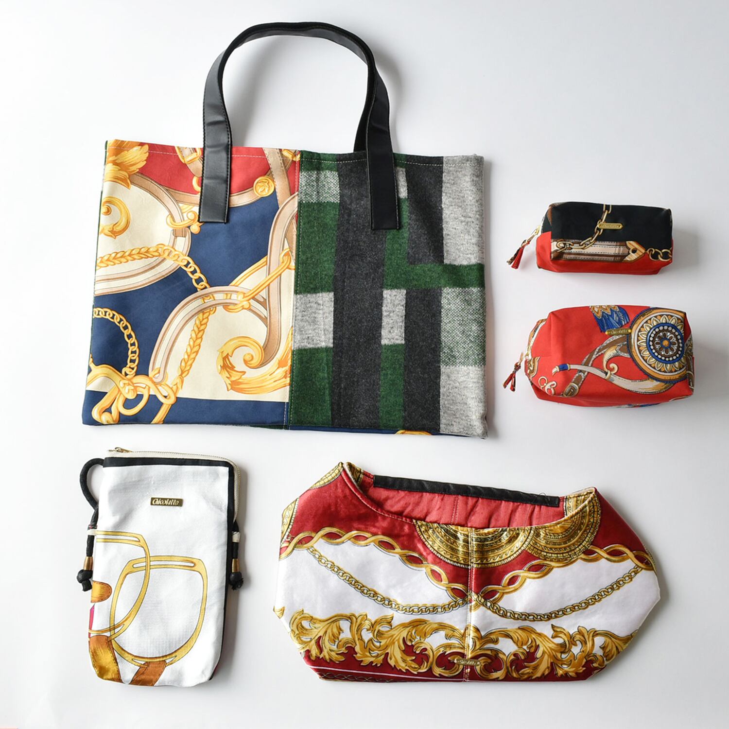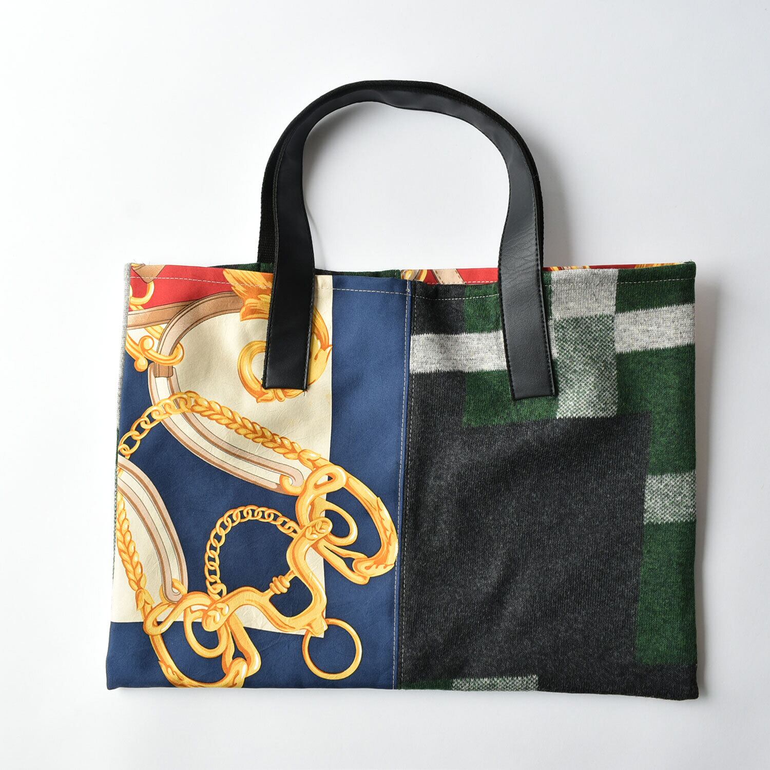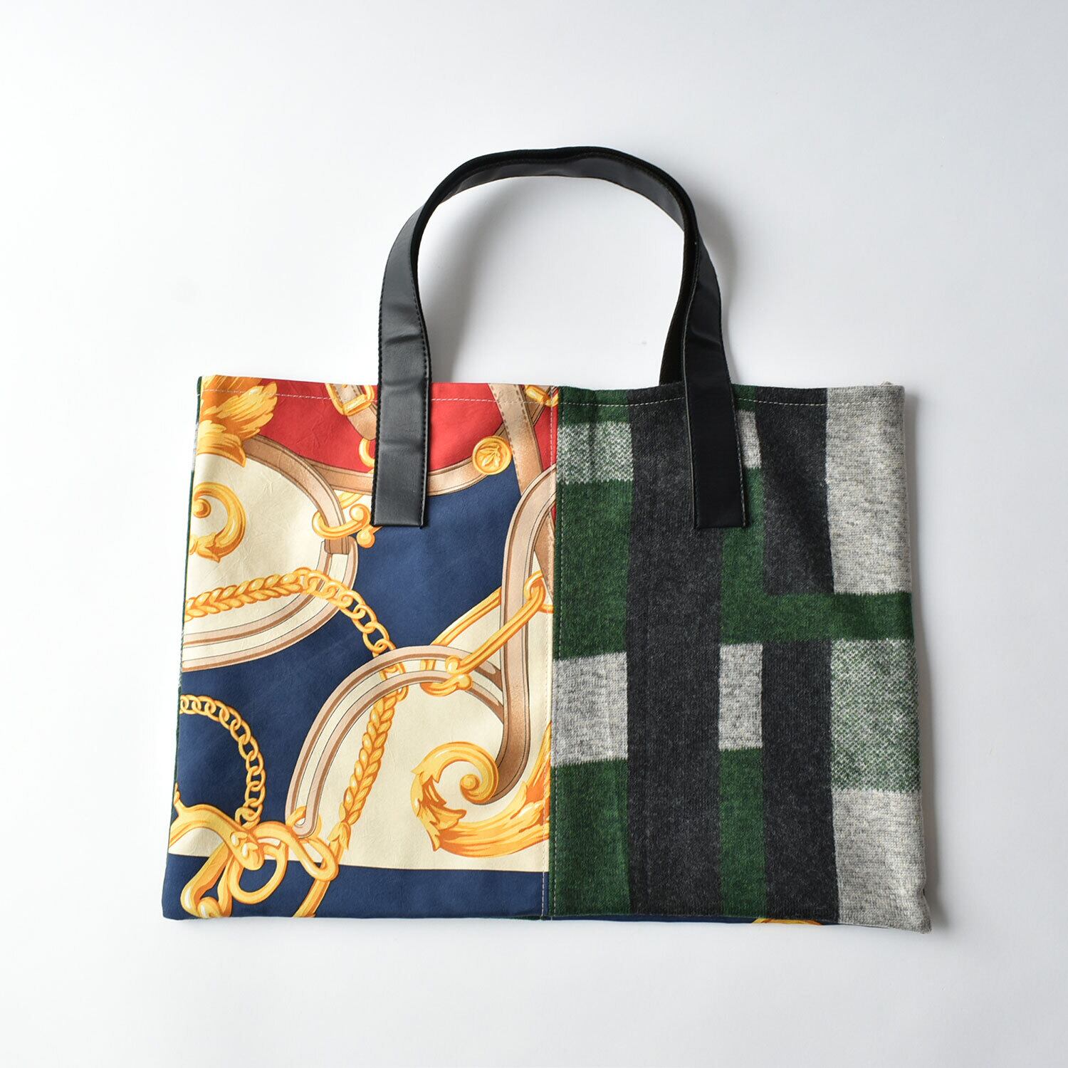 スカーフと異素材でお作りした、福袋限定トートバッグ。