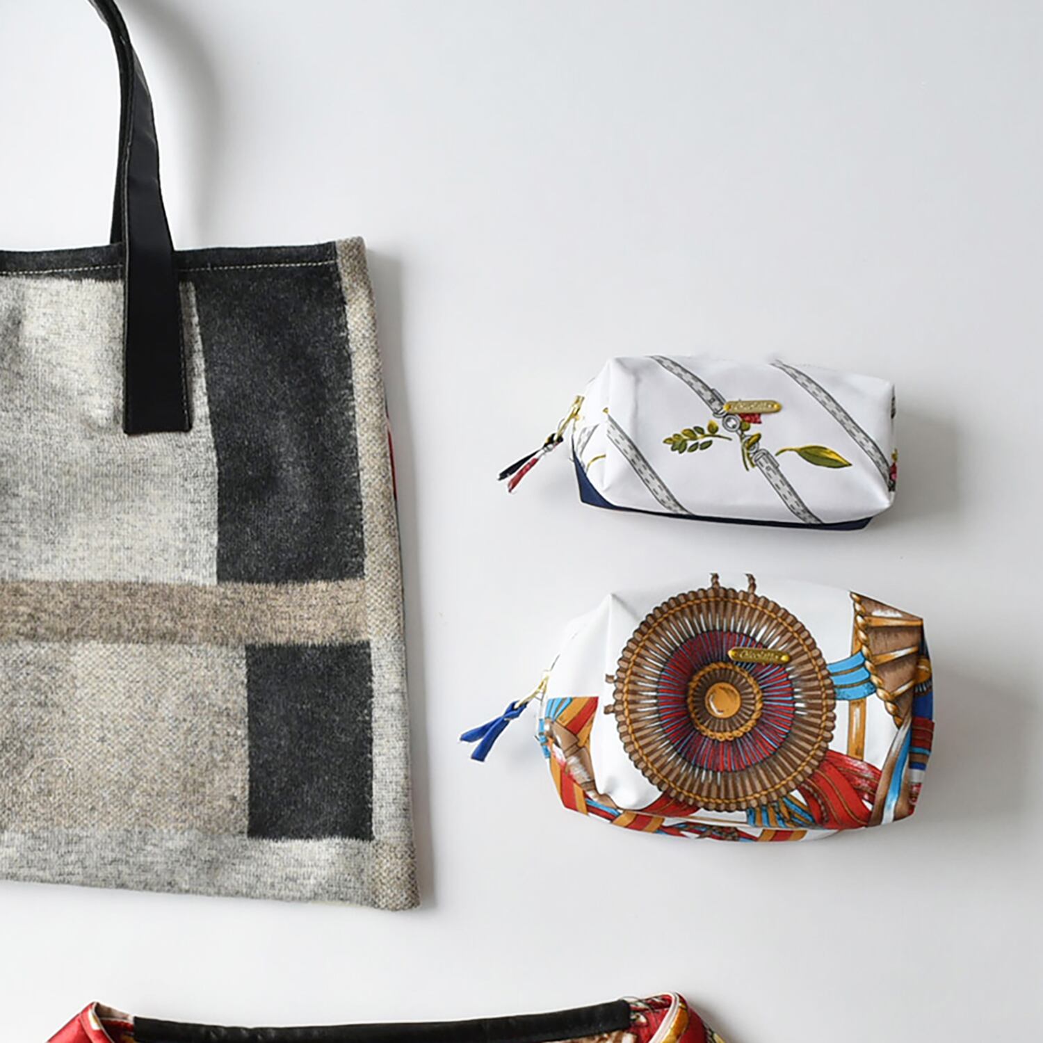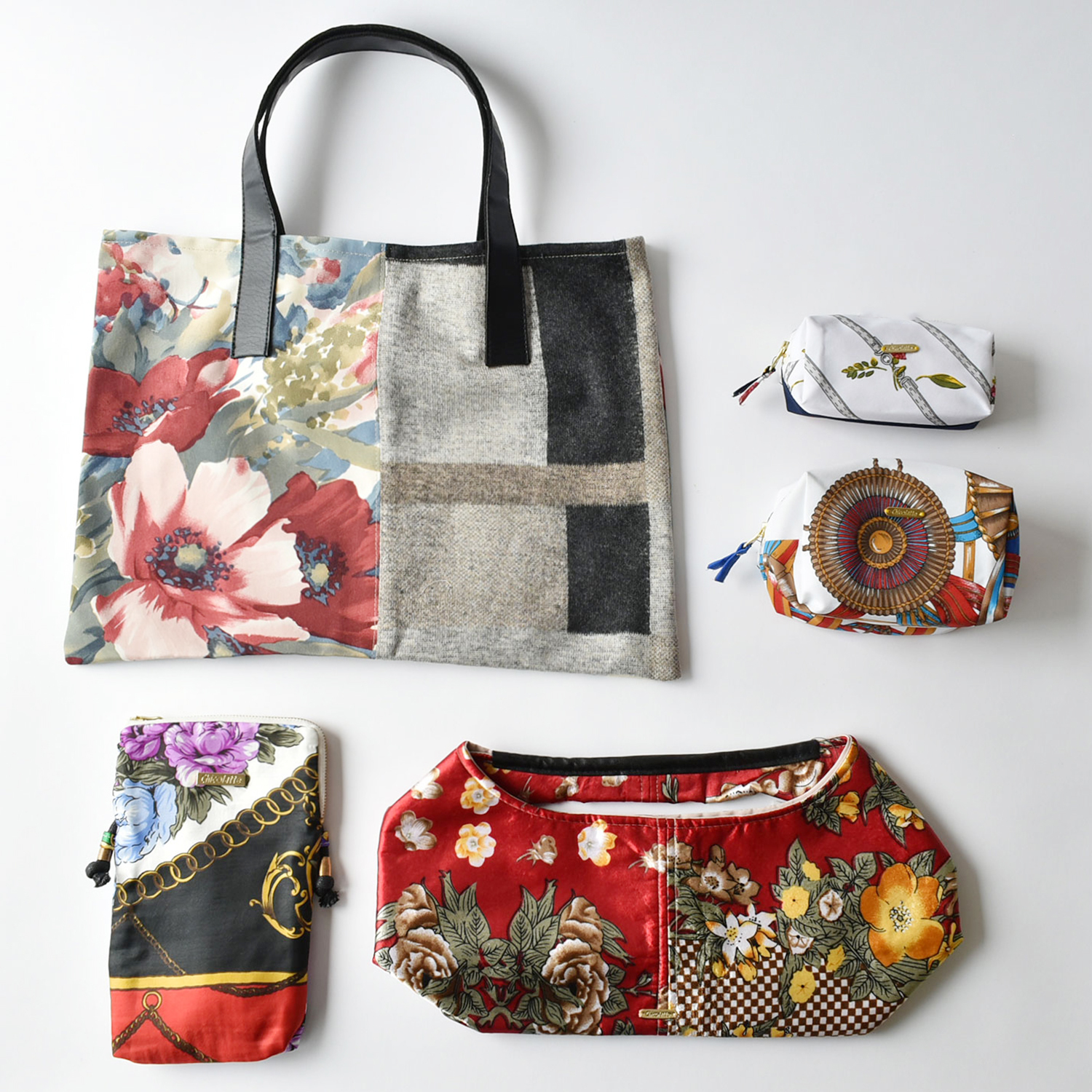 スカーフと異素材でお作りした、福袋限定トートバッグ。