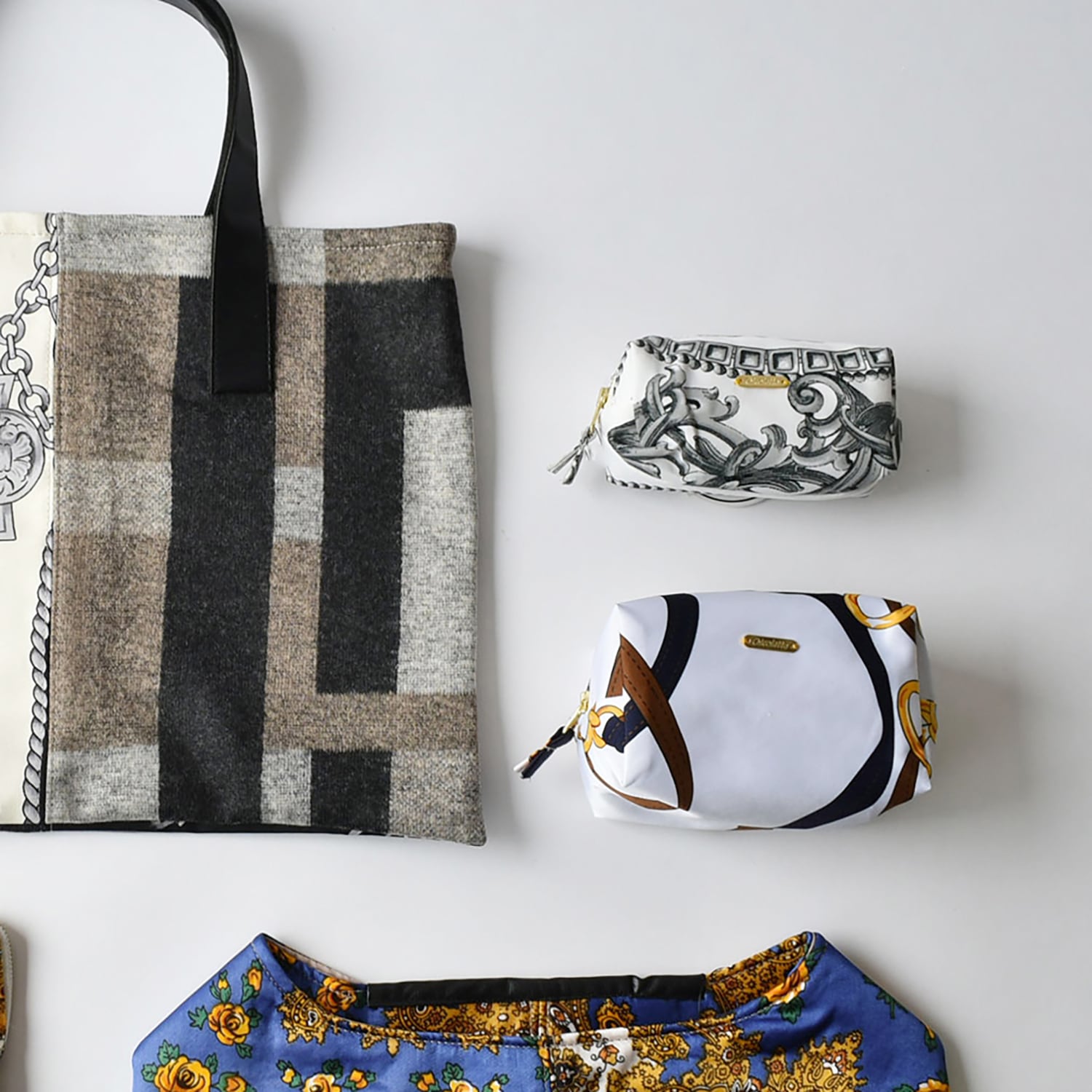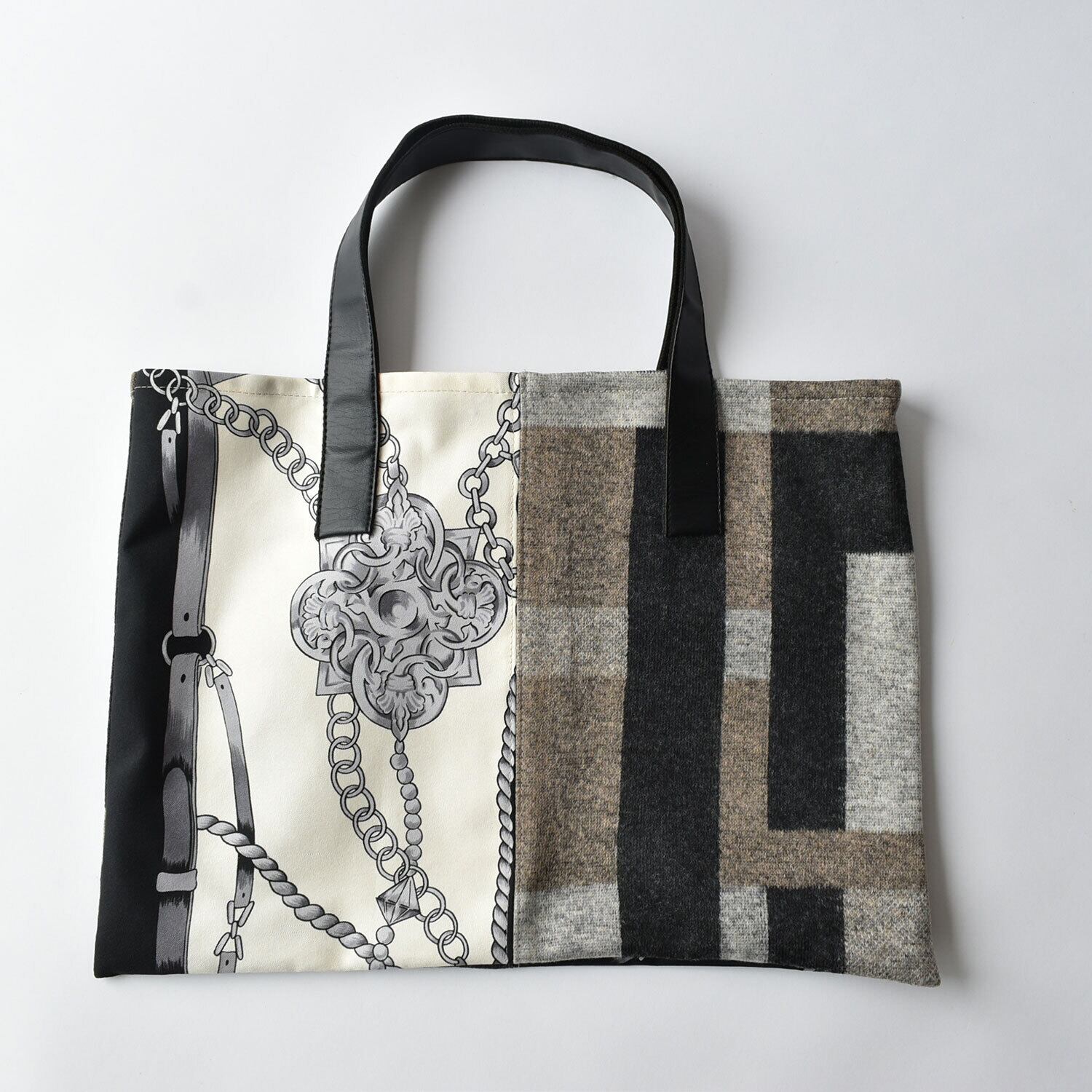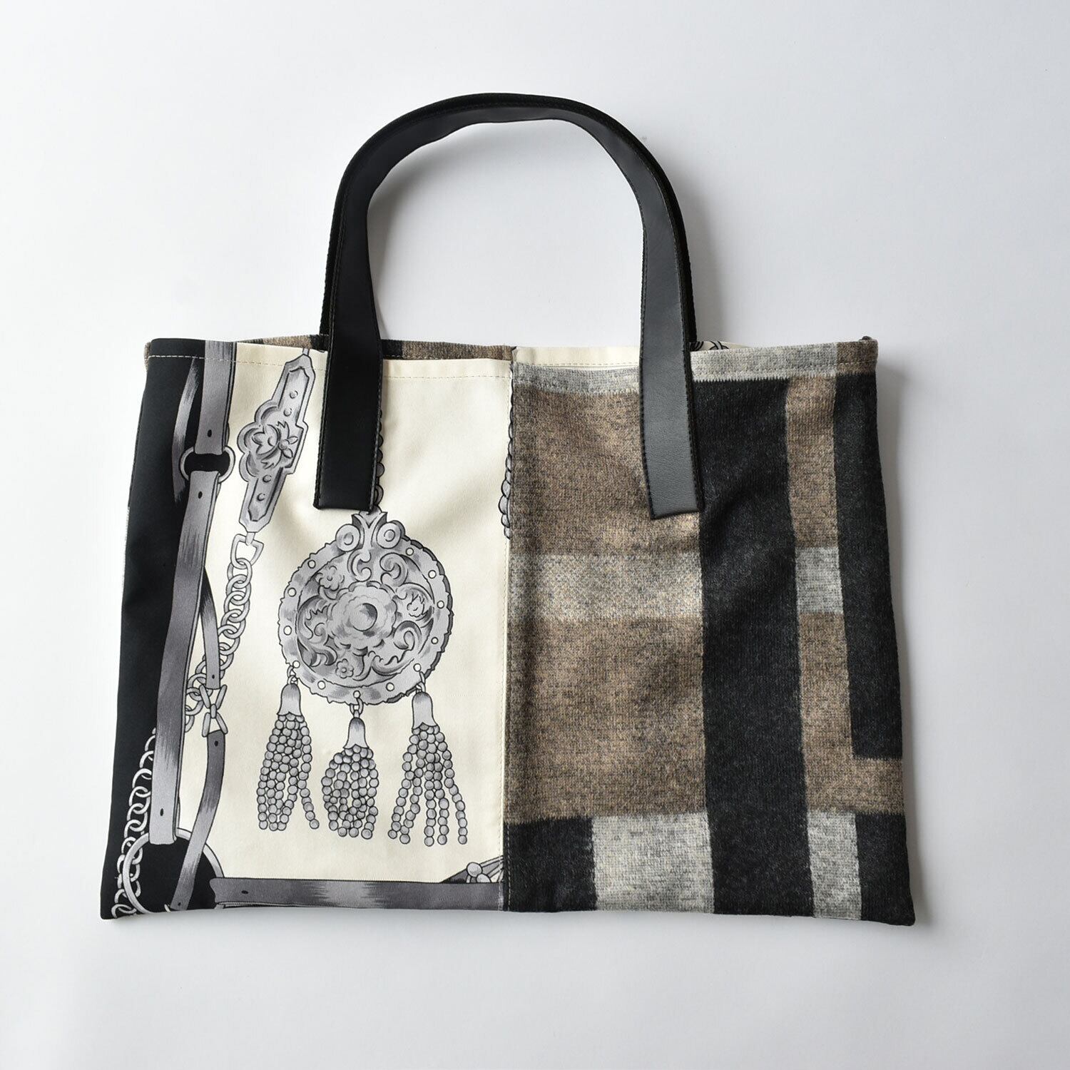 スカーフと異素材でお作りした、福袋限定トートバッグ。