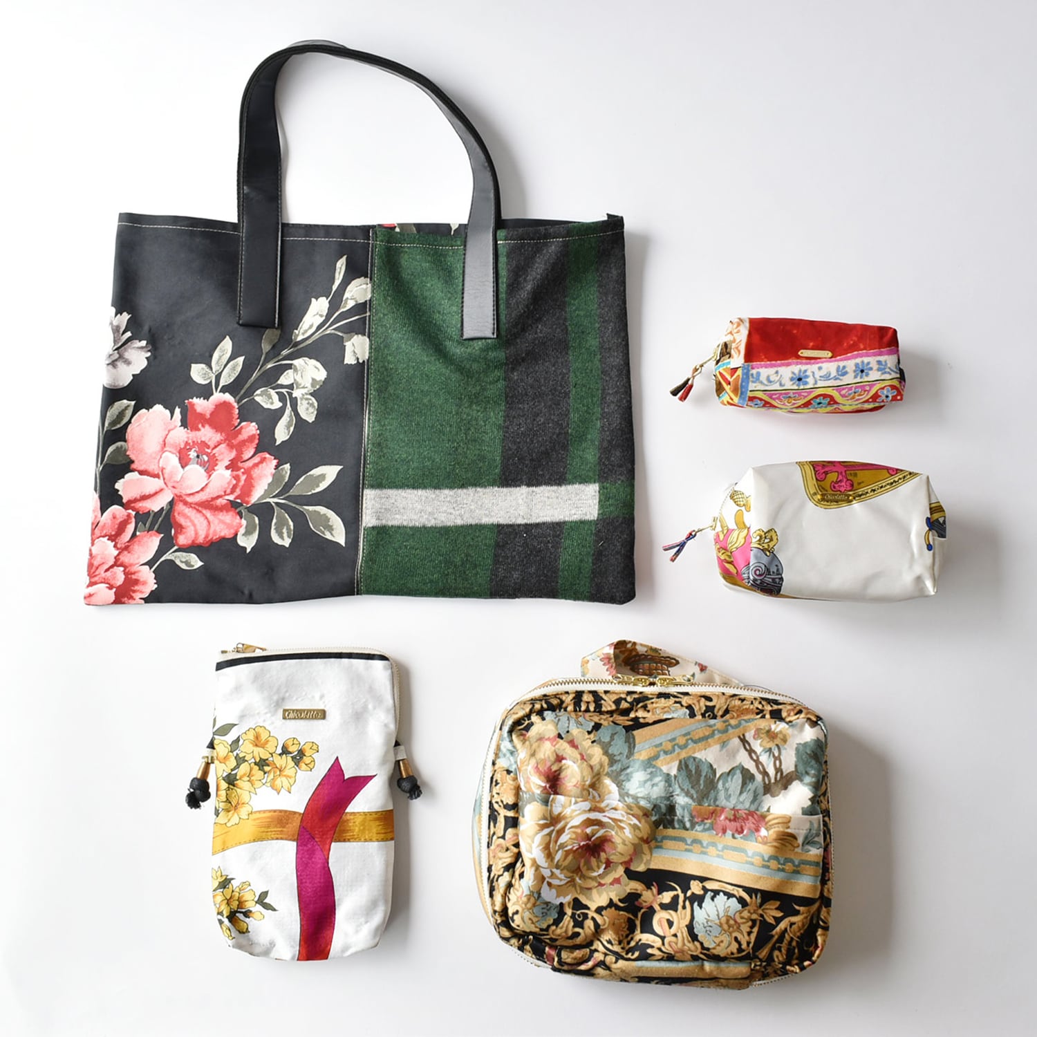 スカーフと異素材でお作りした、福袋限定トートバッグ。