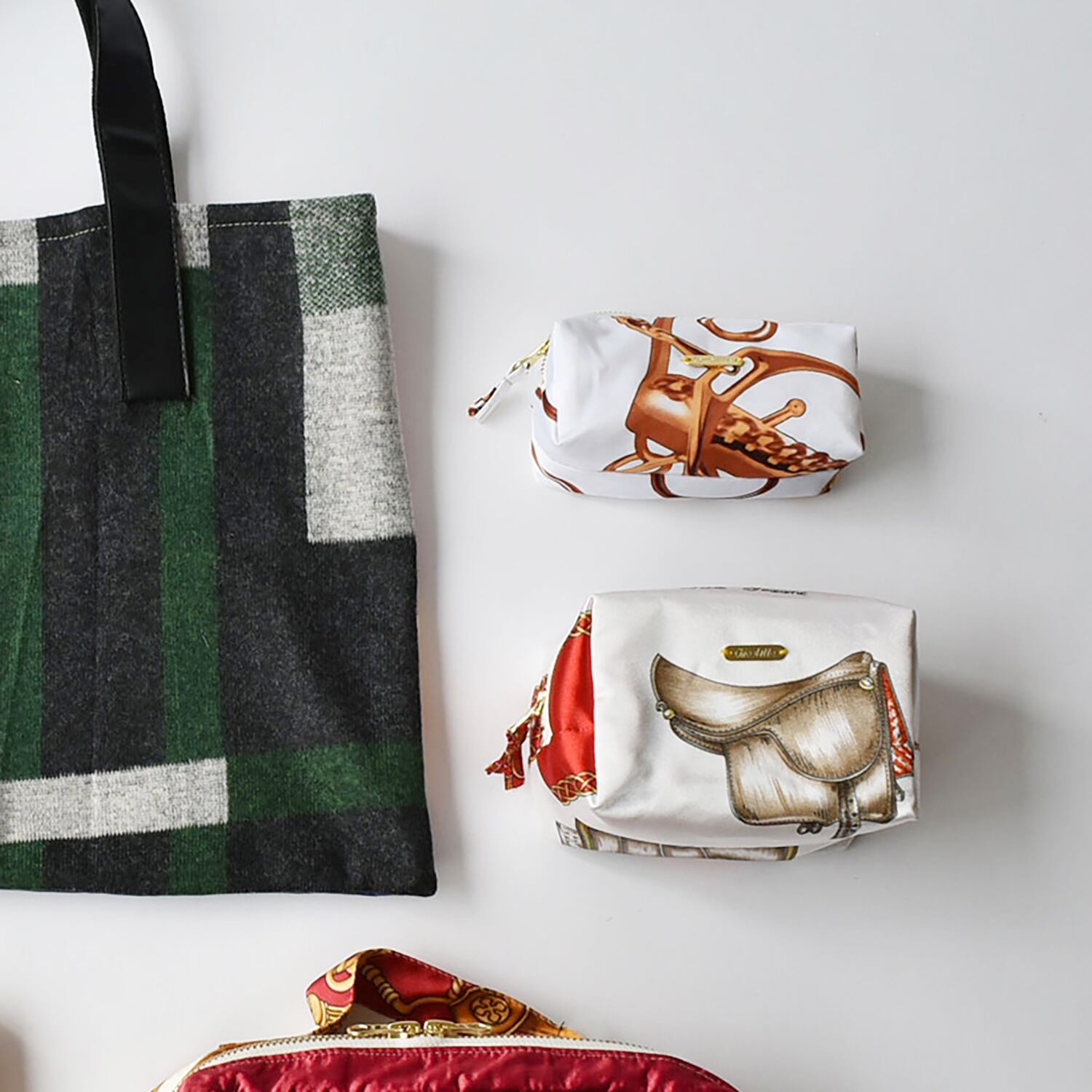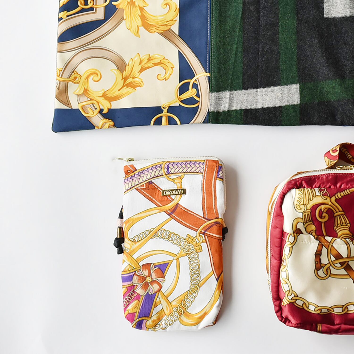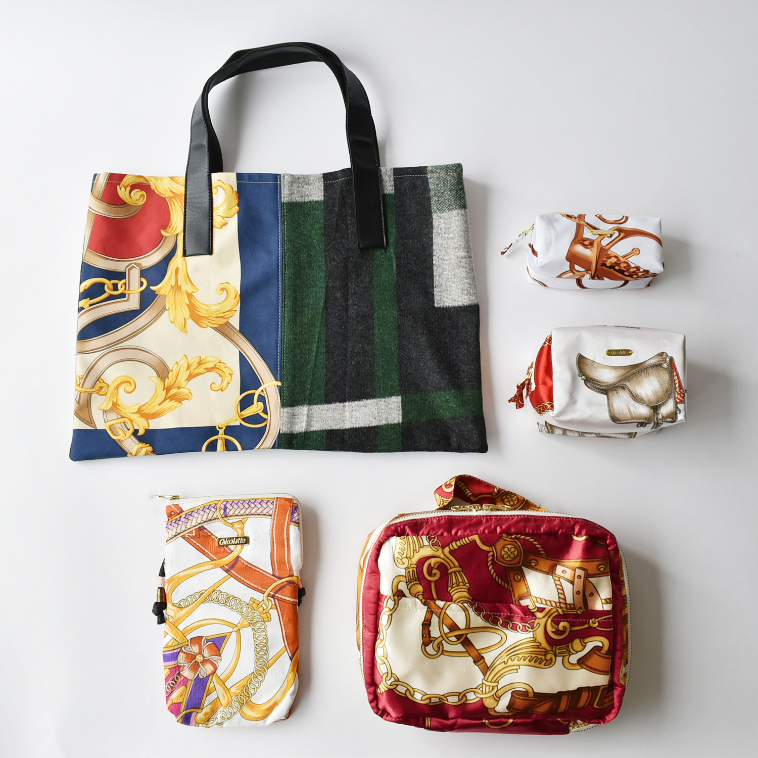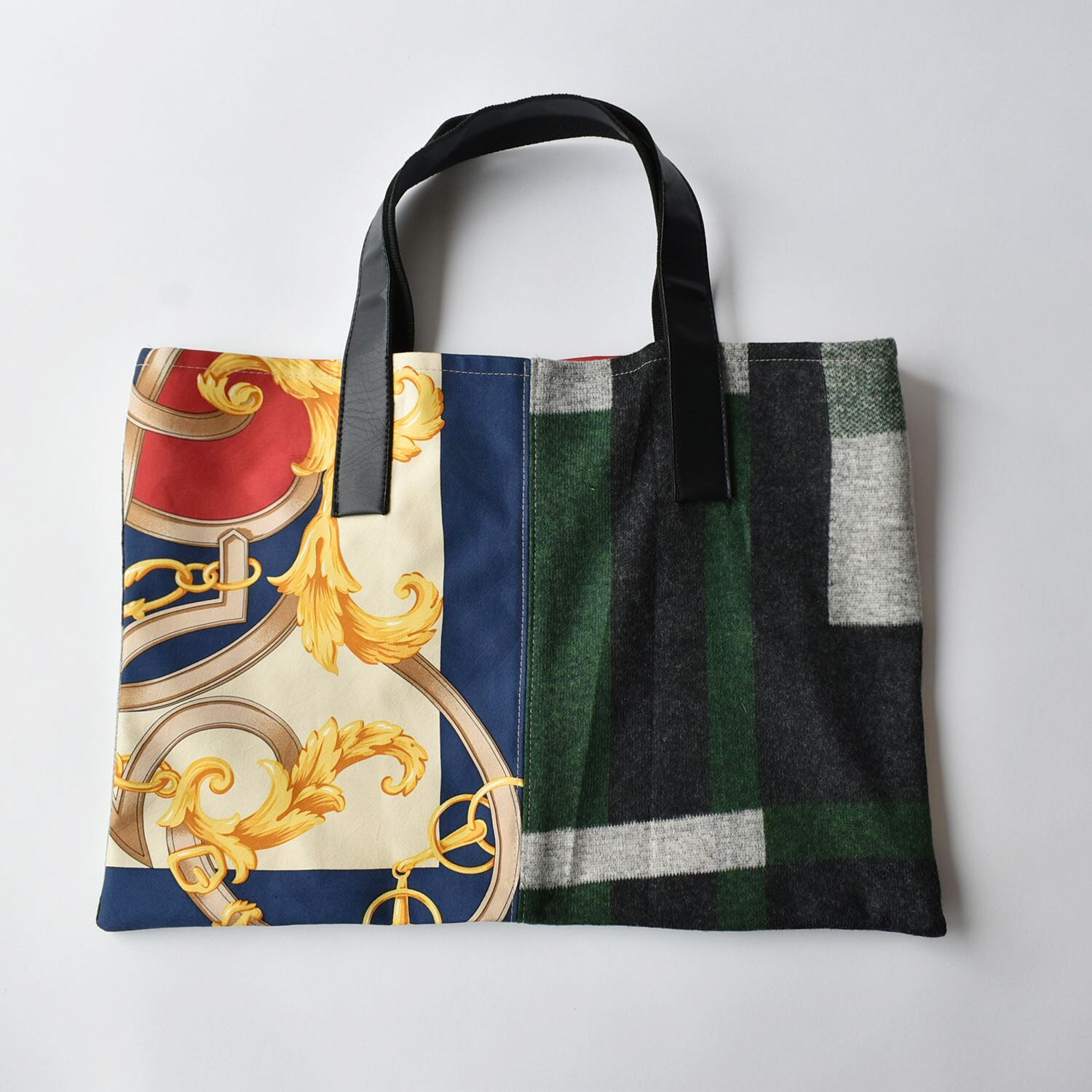 スカーフと異素材でお作りした、福袋限定トートバッグ。