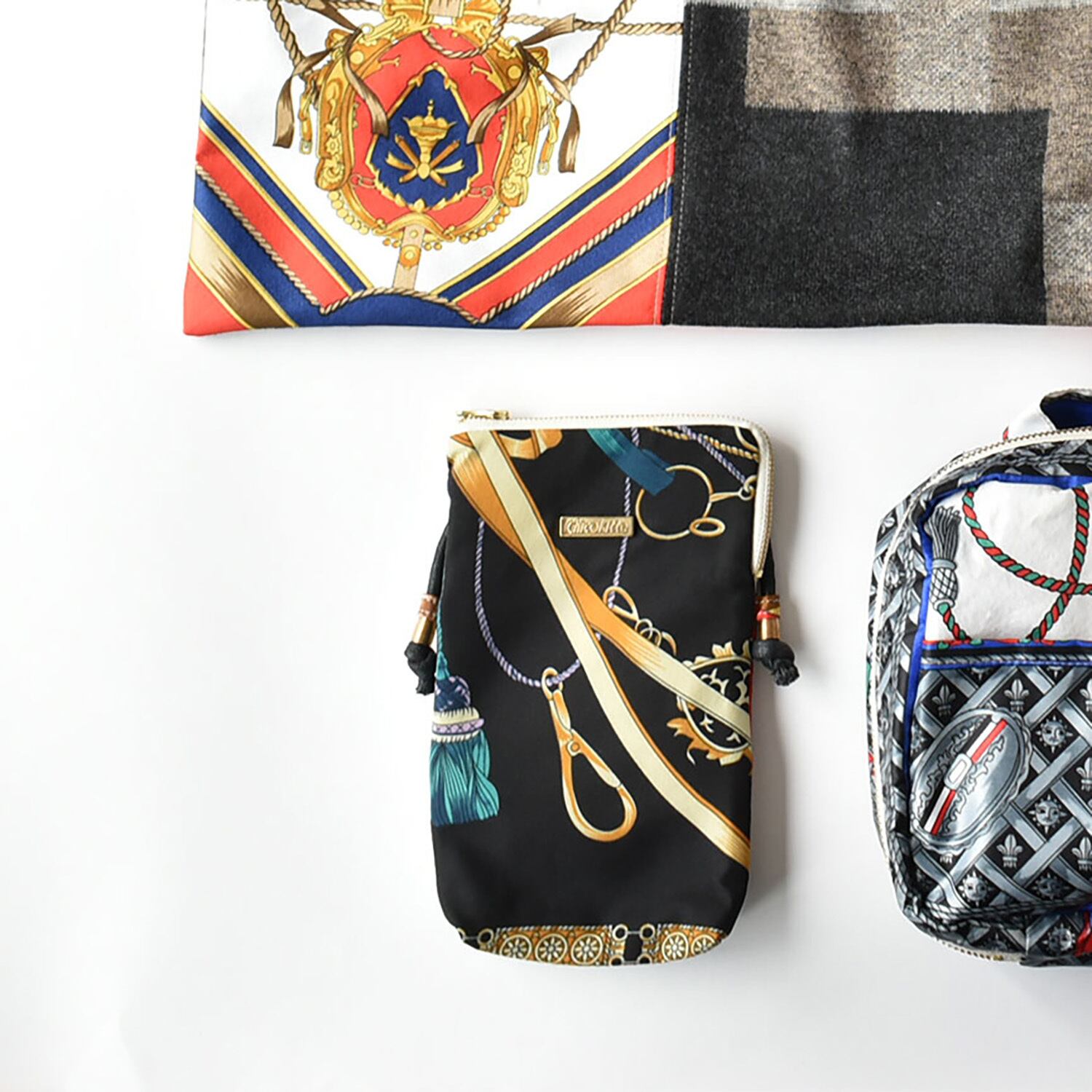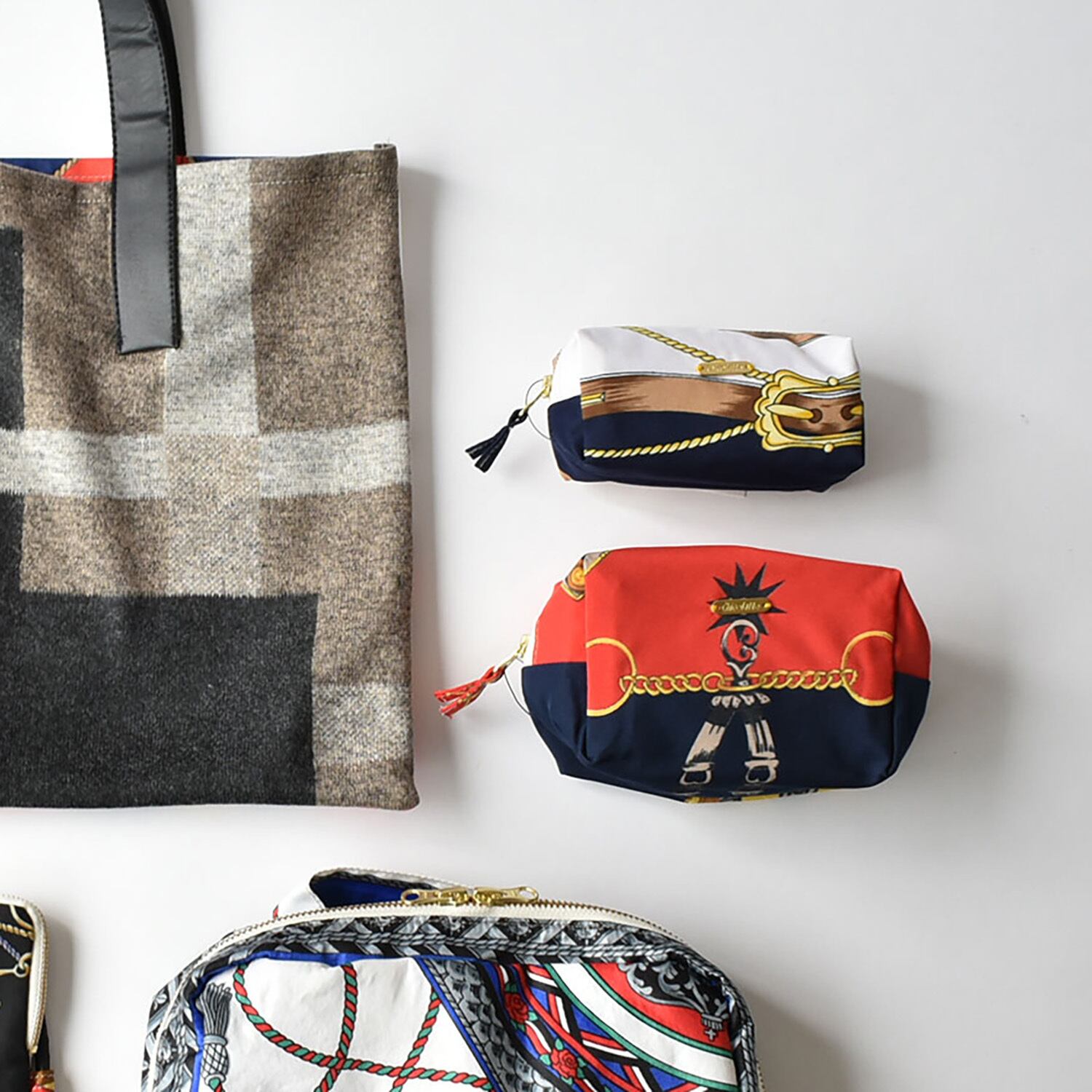 スカーフと異素材でお作りした、福袋限定トートバッグ。