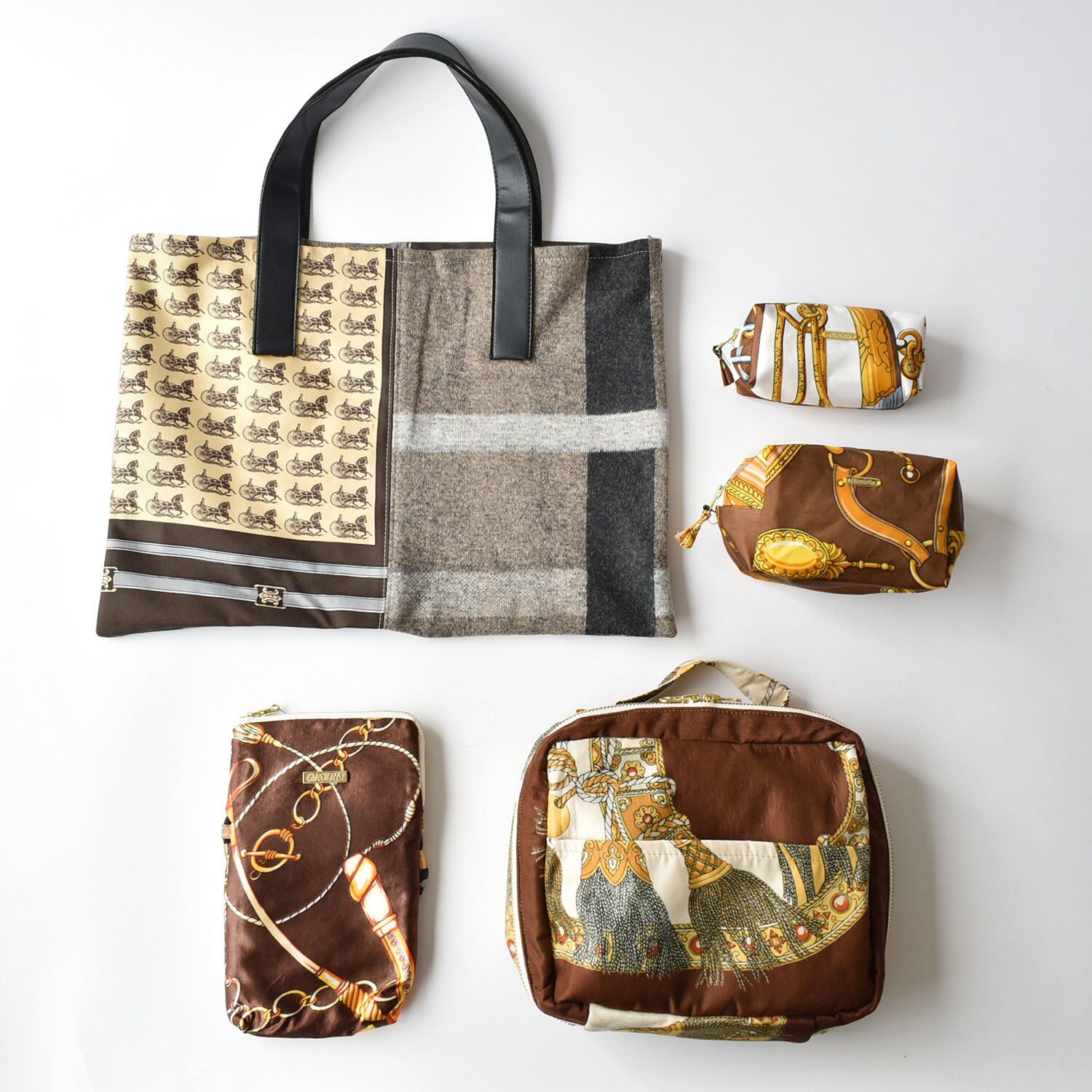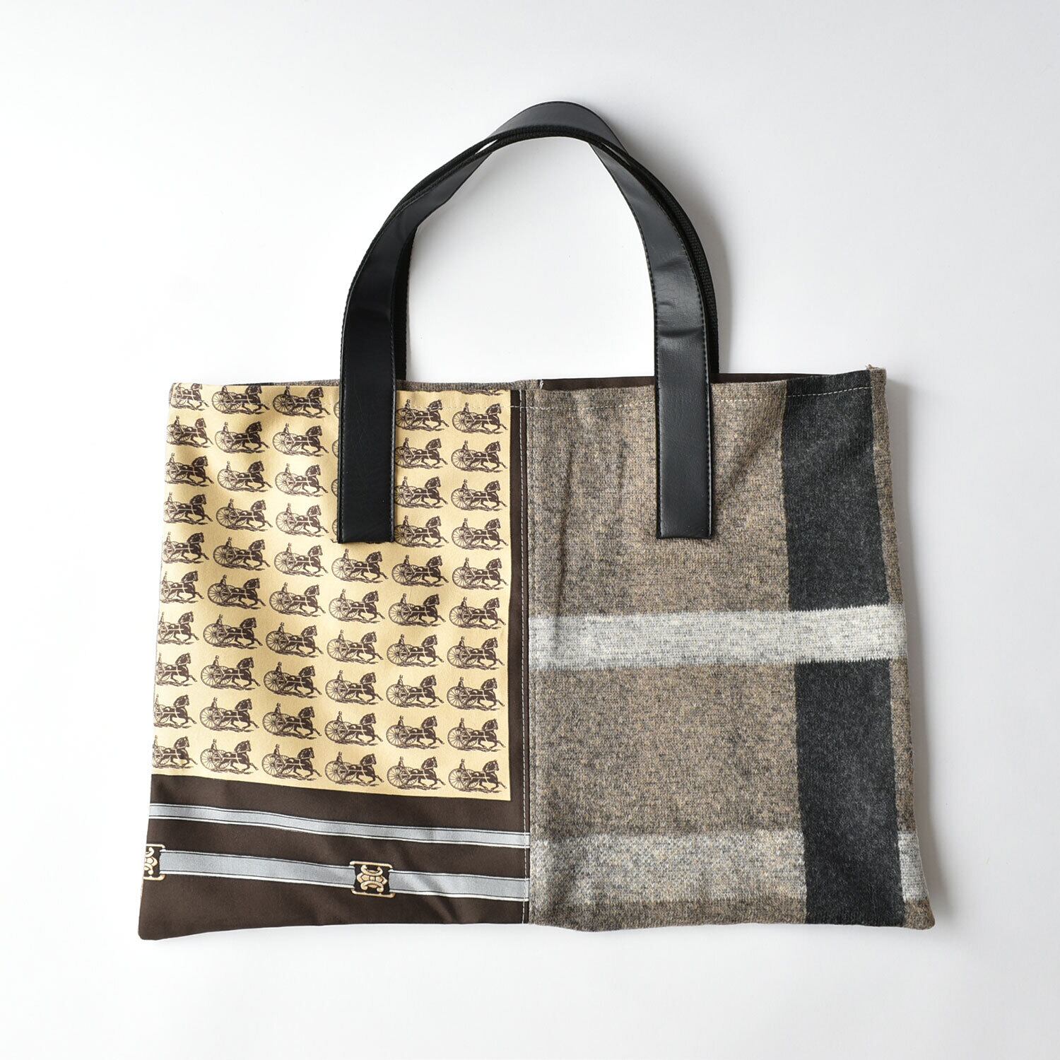 スカーフと異素材でお作りした、福袋限定トートバッグ。