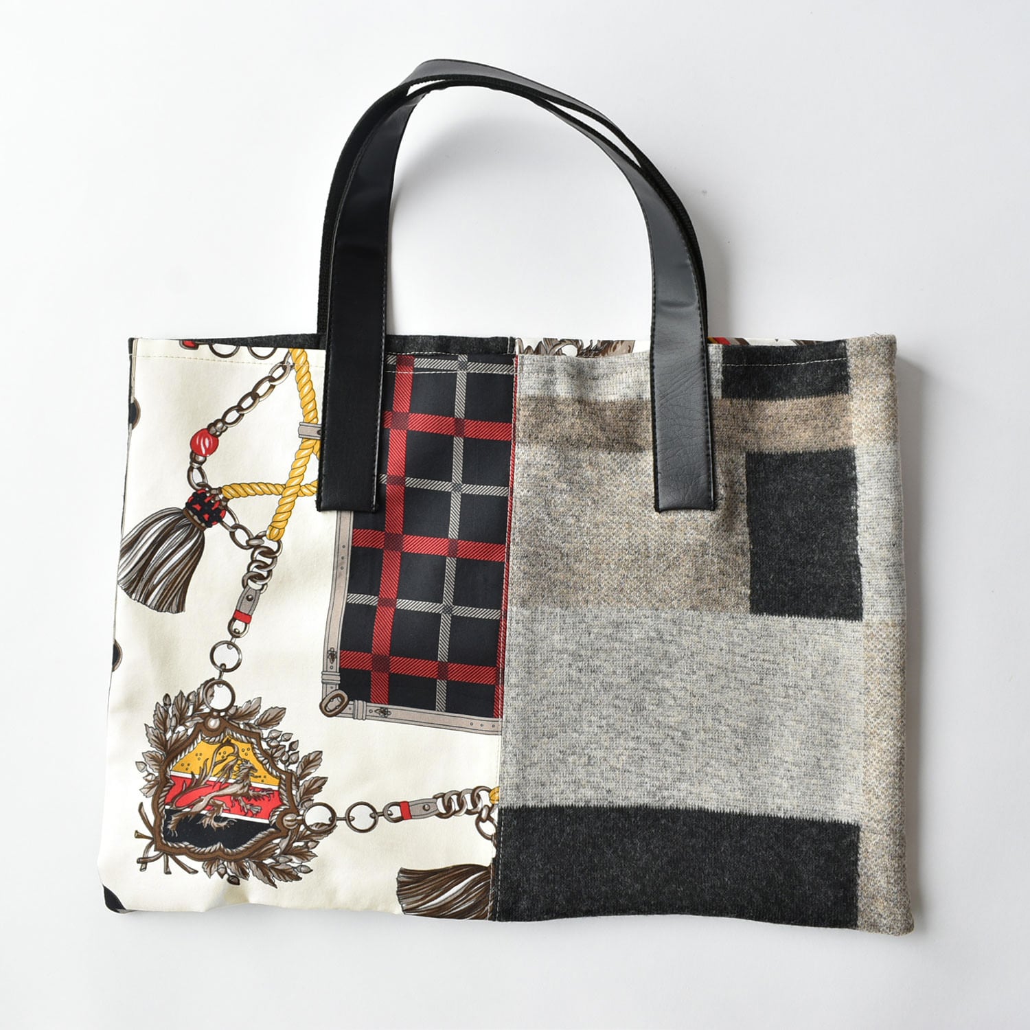 スカーフと異素材でお作りした、福袋限定トートバッグ。