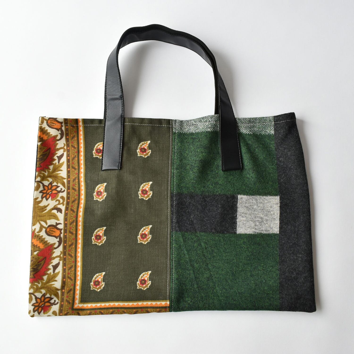 スカーフと異素材でお作りした、福袋限定トートバッグ。