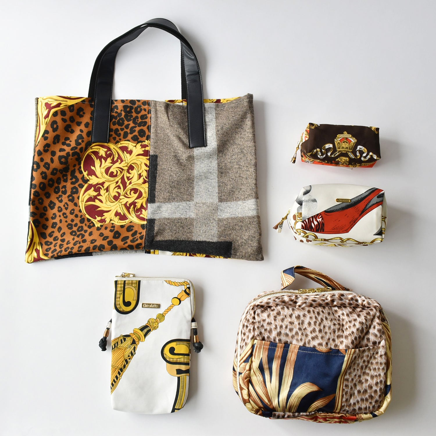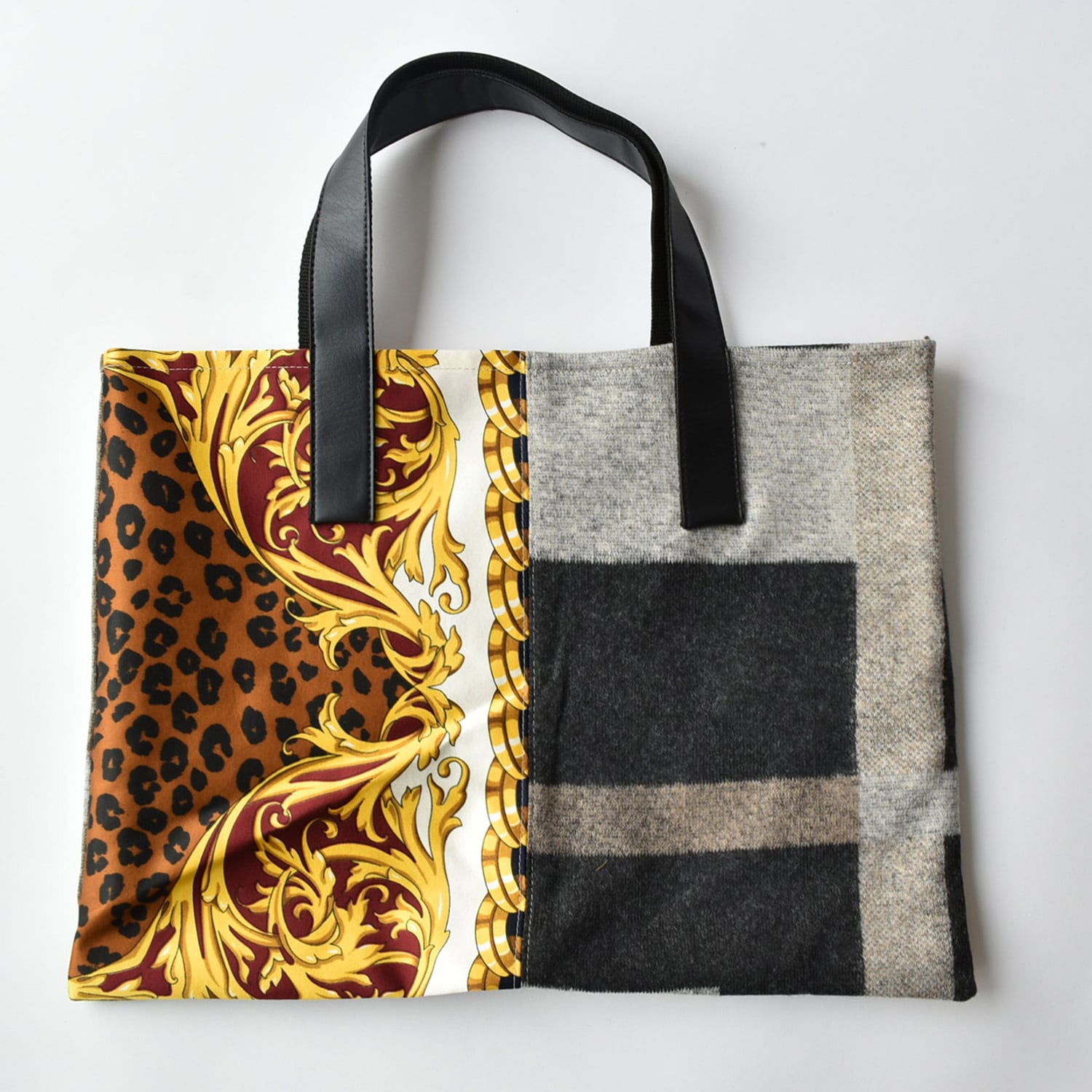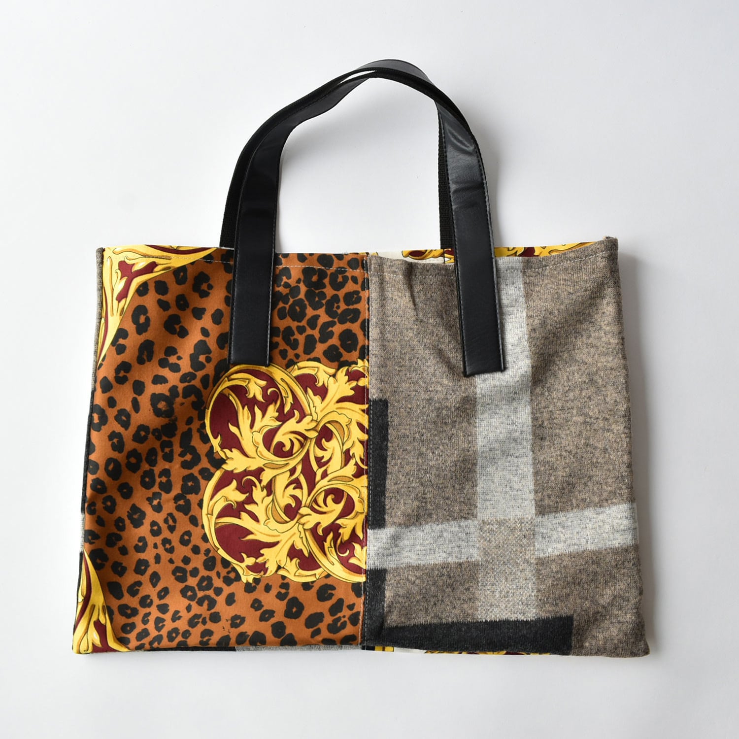 スカーフと異素材でお作りした、福袋限定トートバッグ。