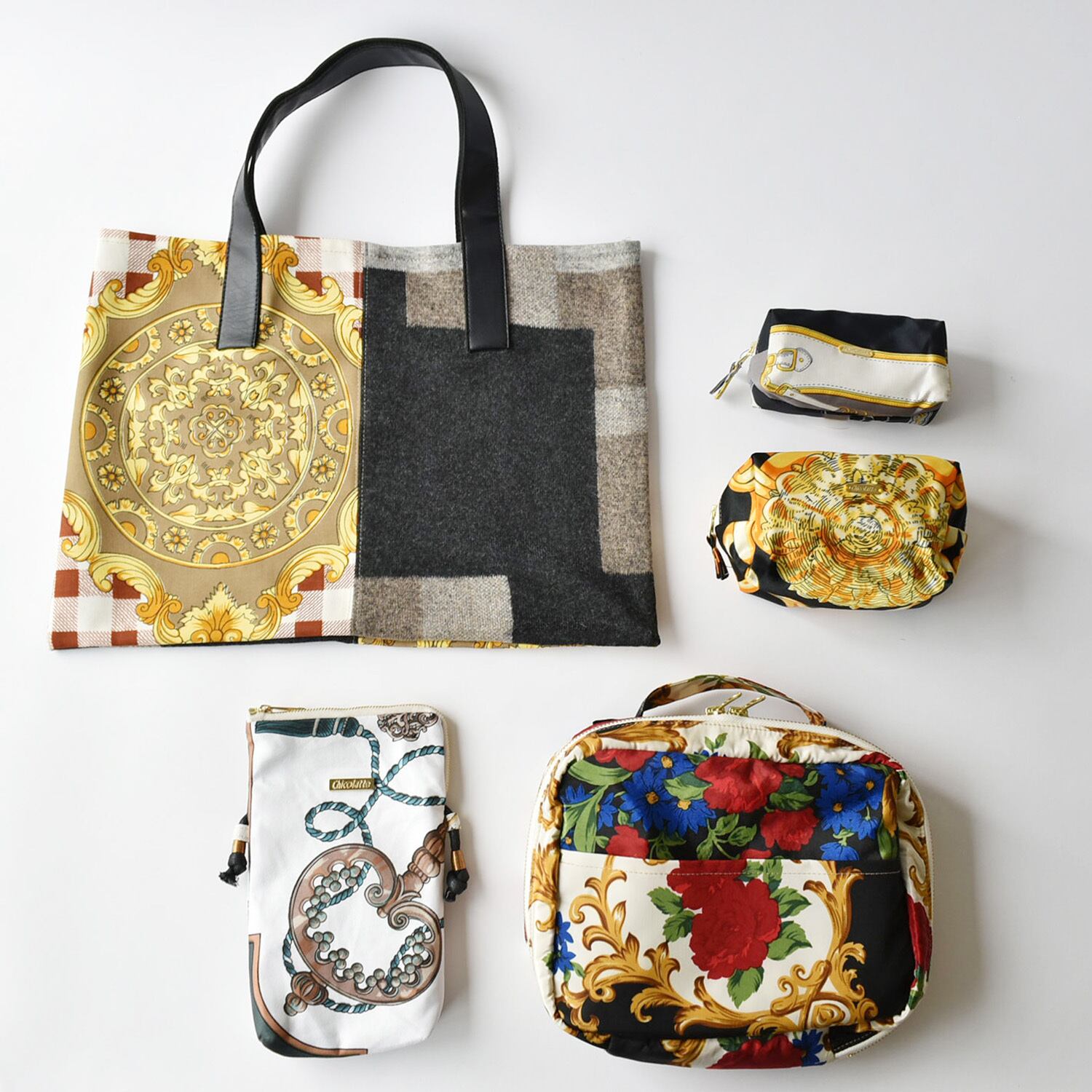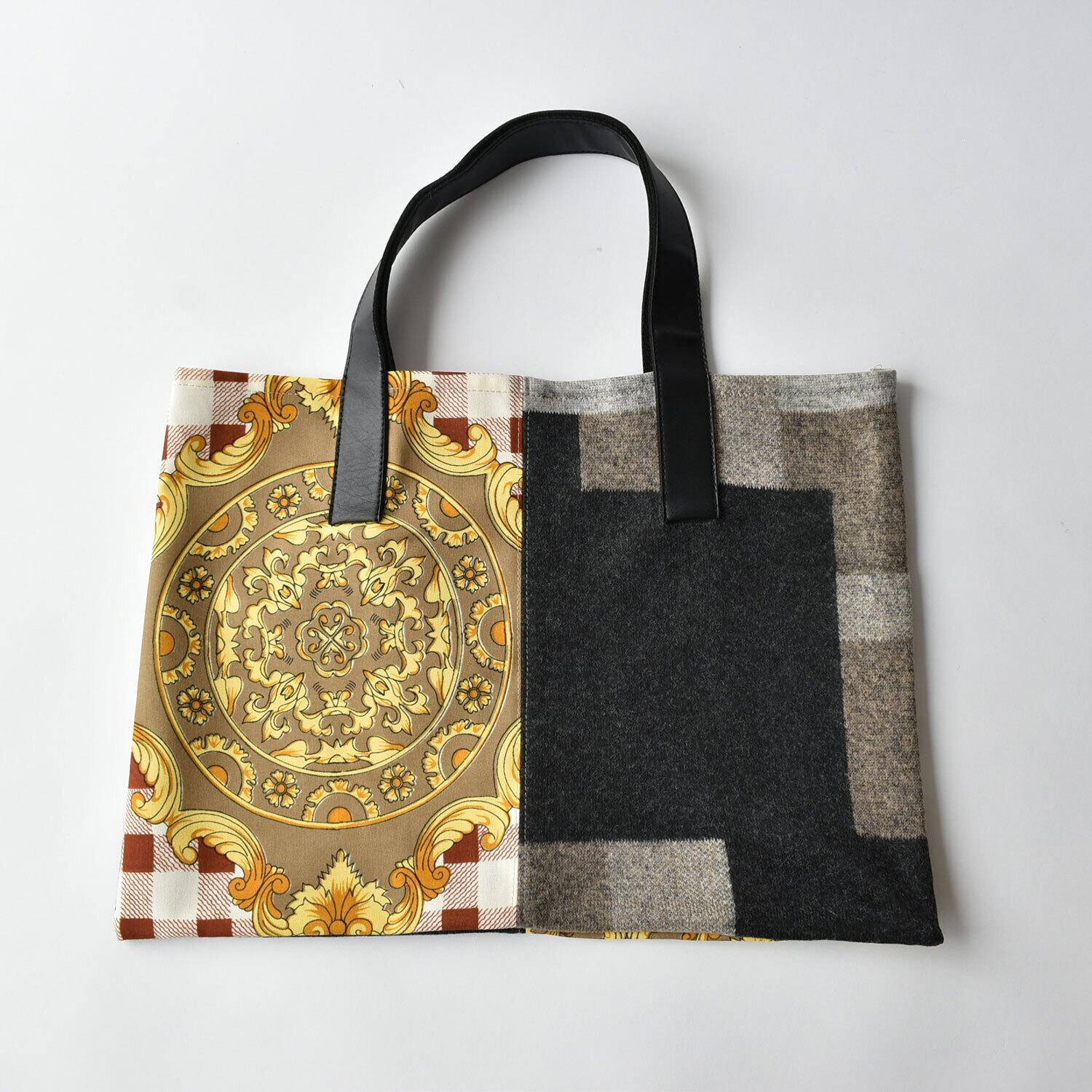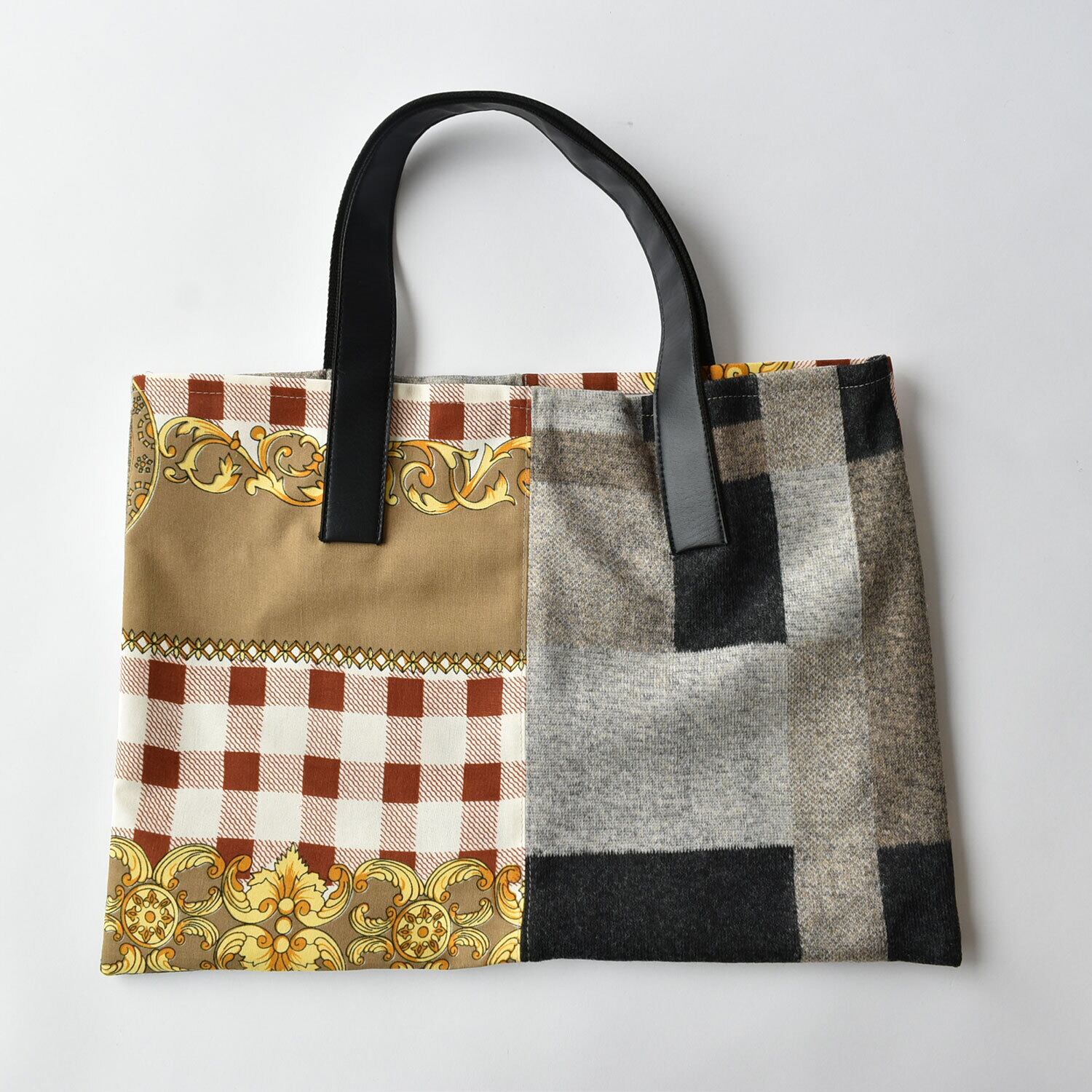 スカーフと異素材でお作りした、福袋限定トートバッグ。