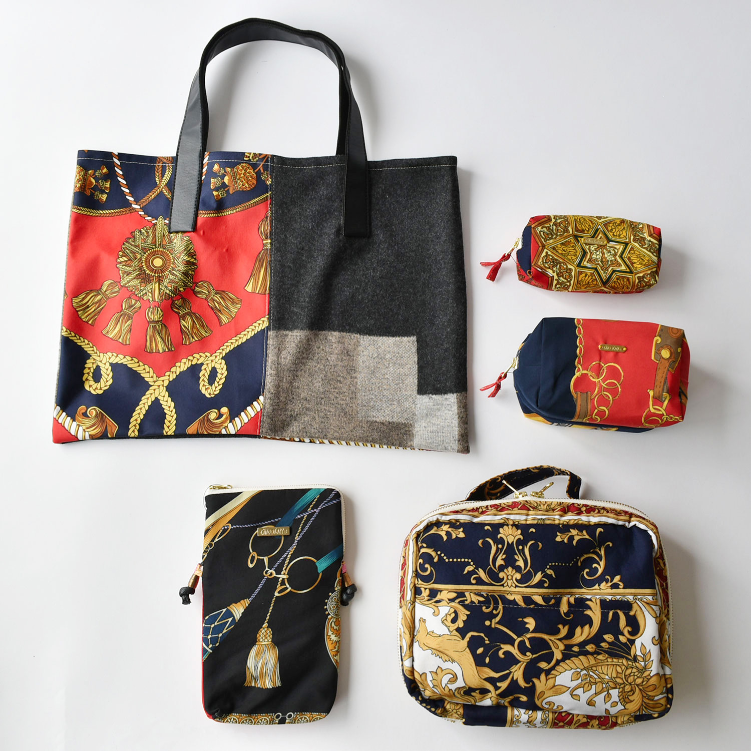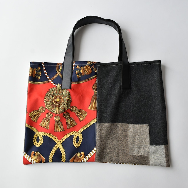 スカーフと異素材でお作りした、福袋限定トートバッグ。