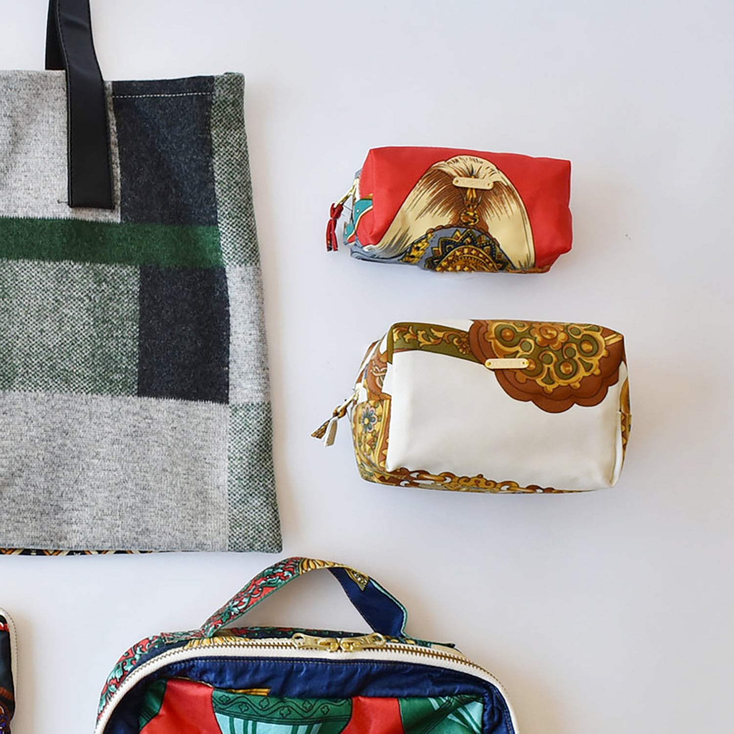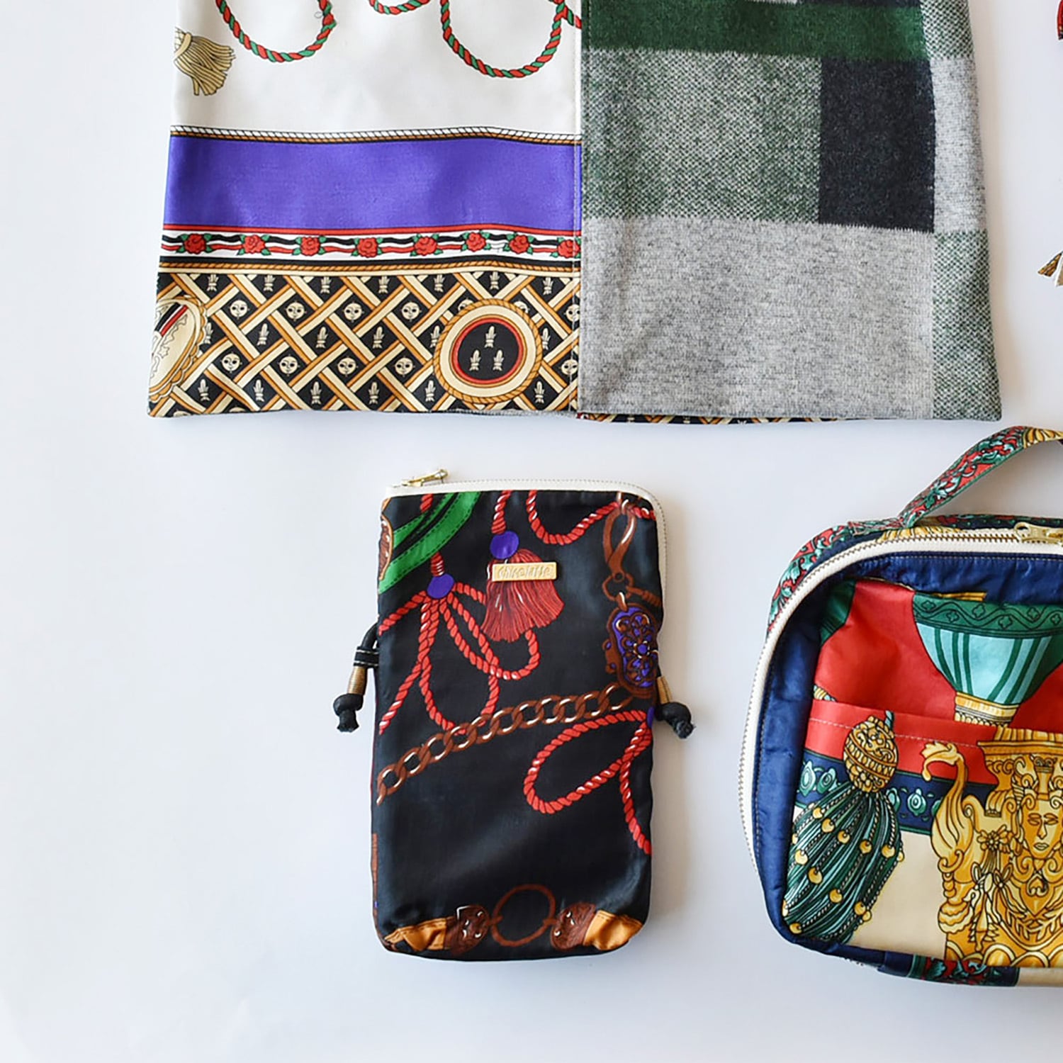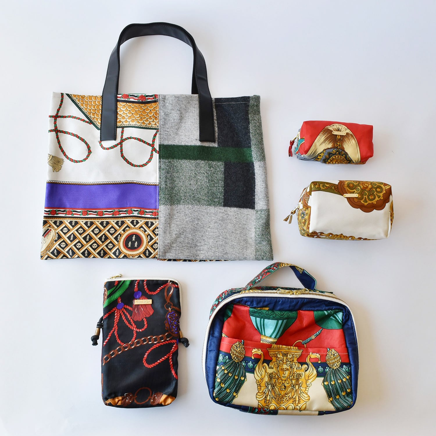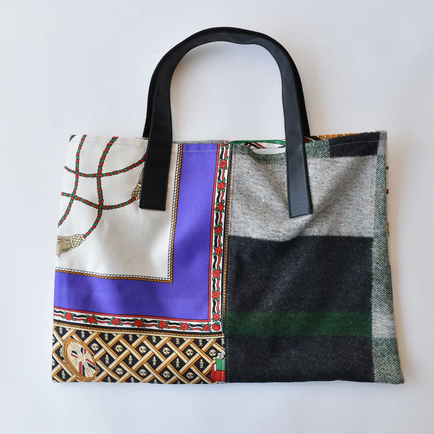 スカーフと異素材でお作りした、福袋限定トートバッグ。