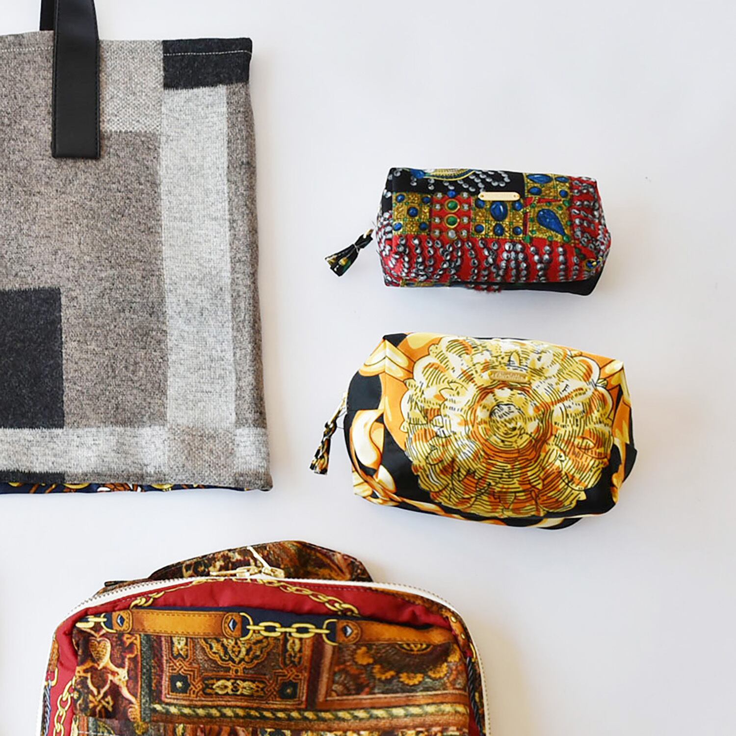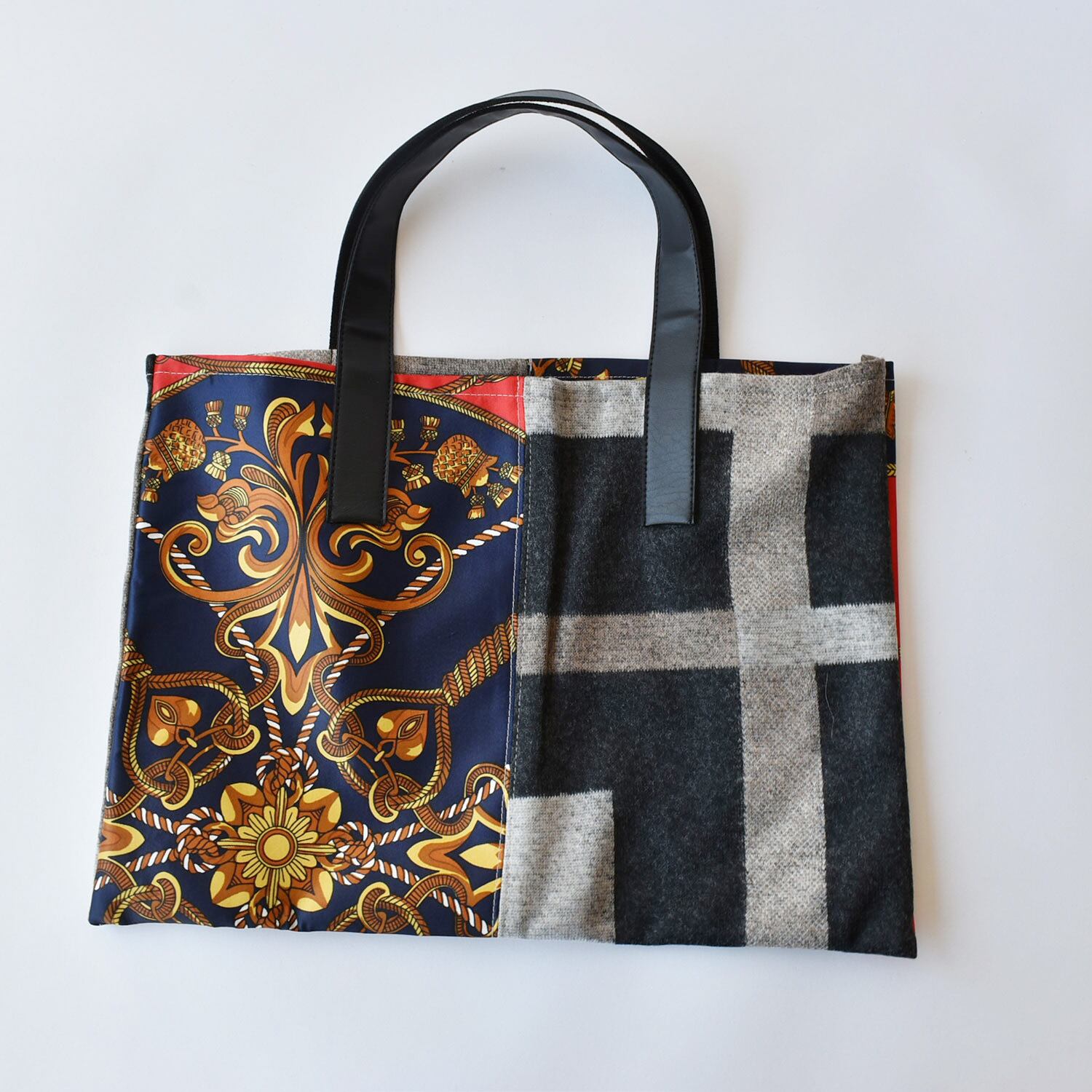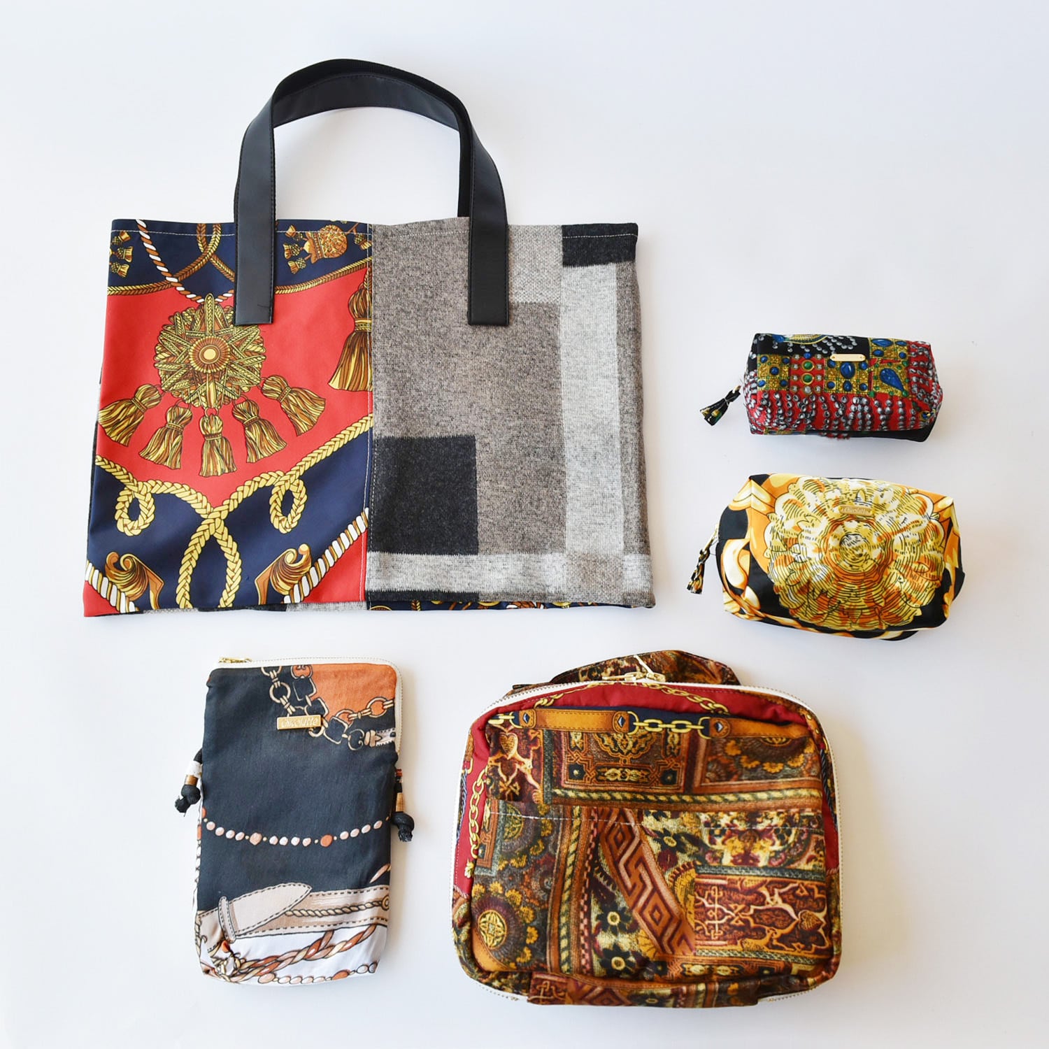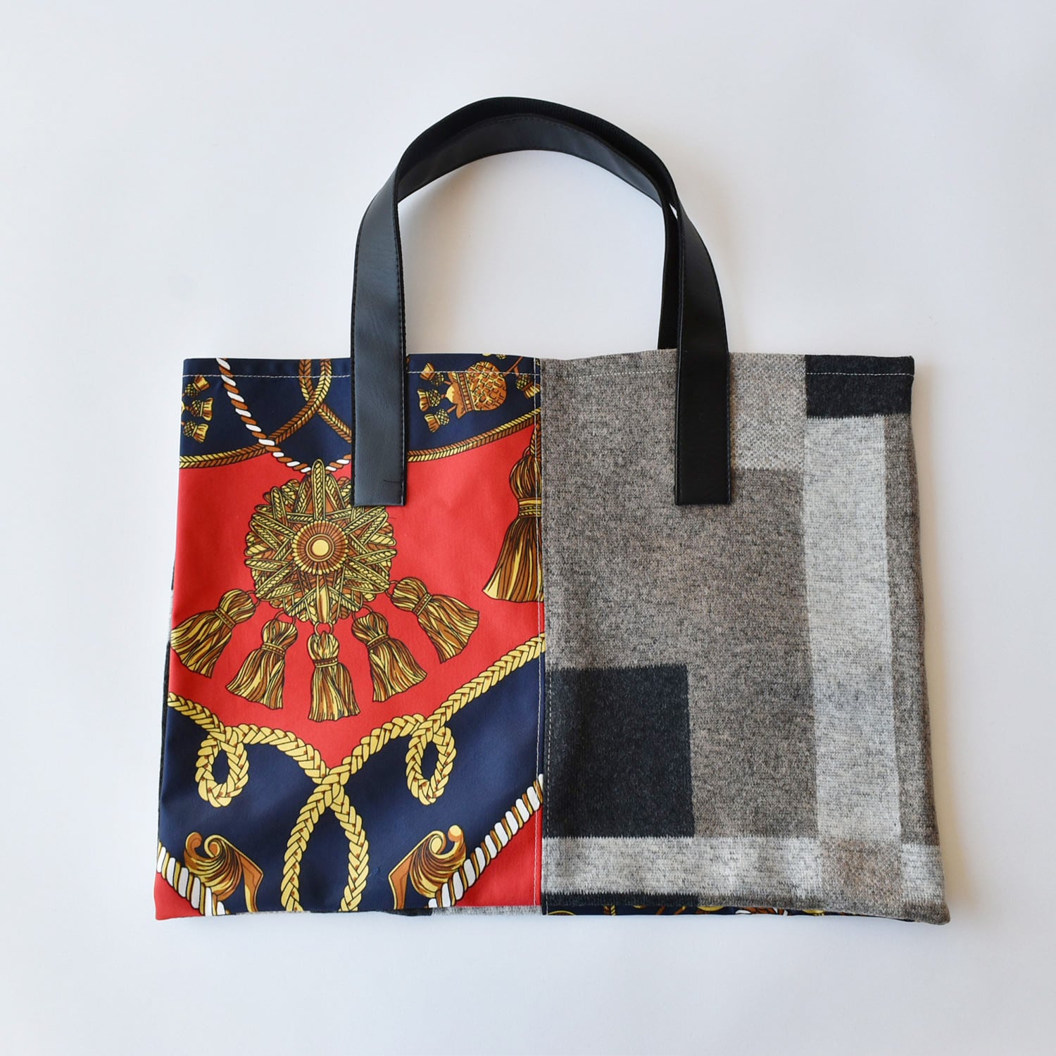 スカーフと異素材でお作りした、福袋限定トートバッグ。
