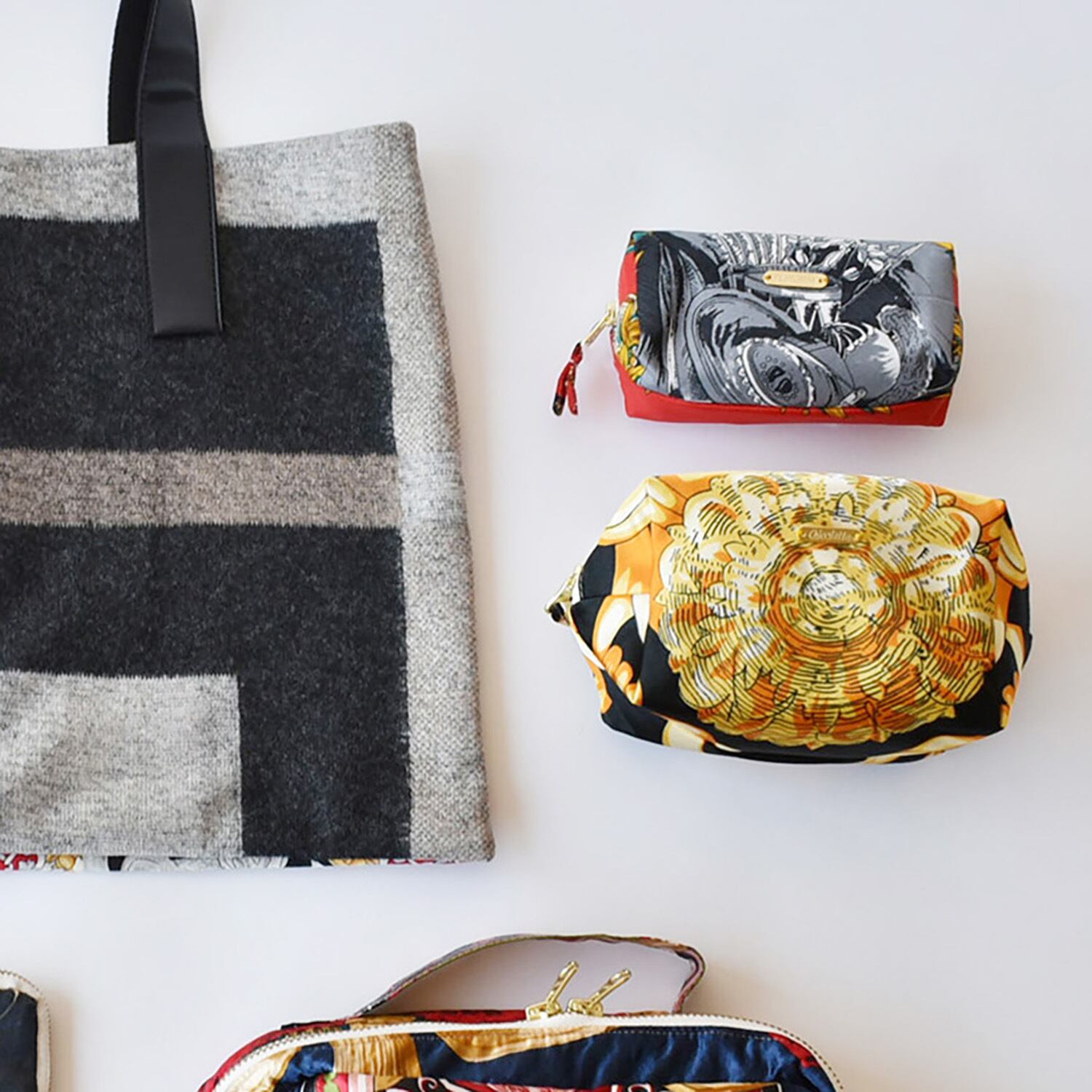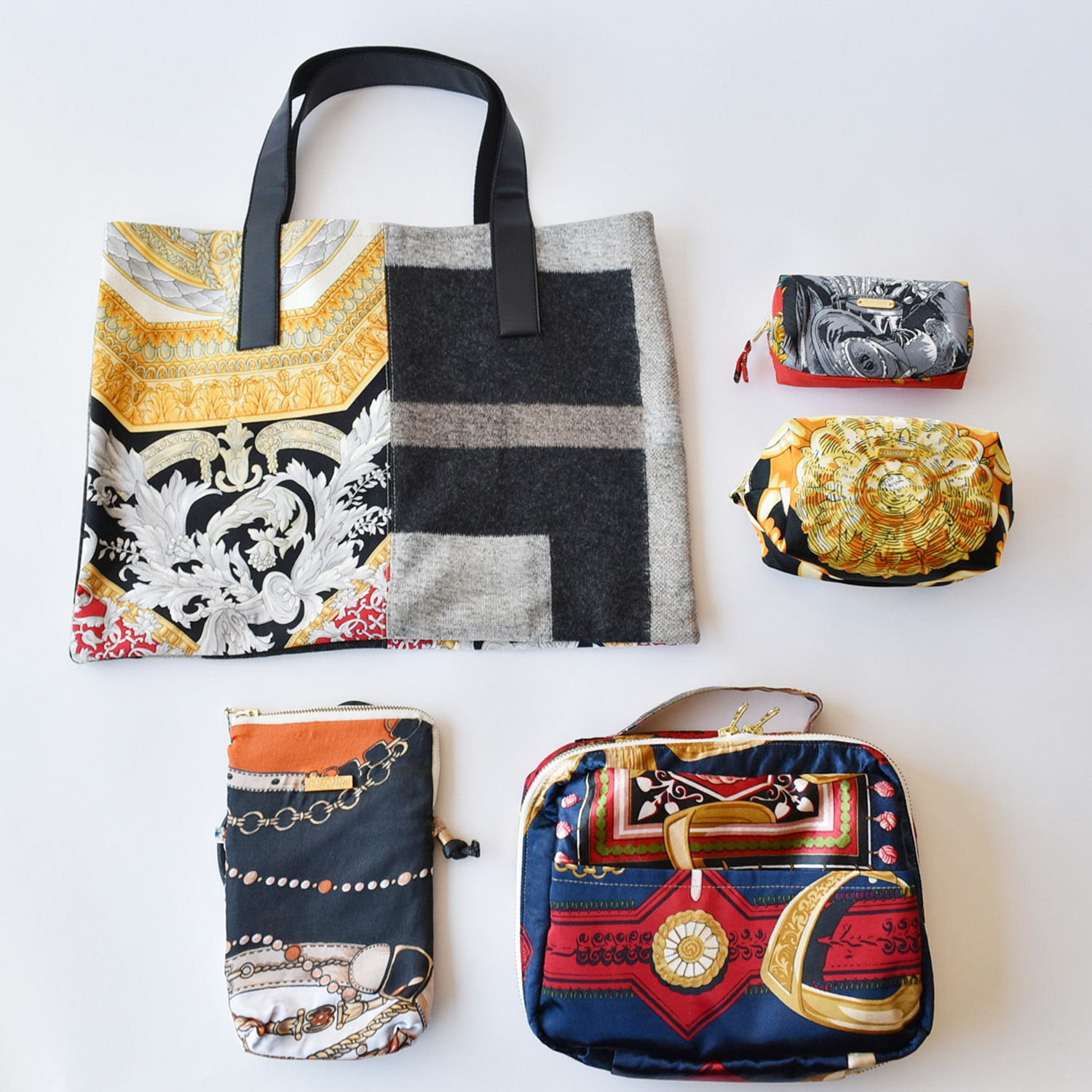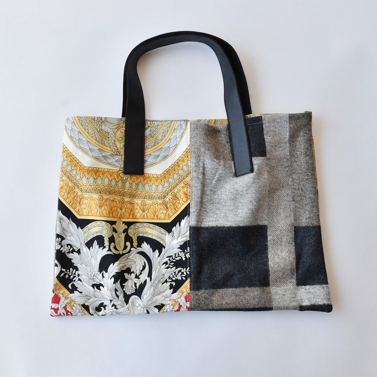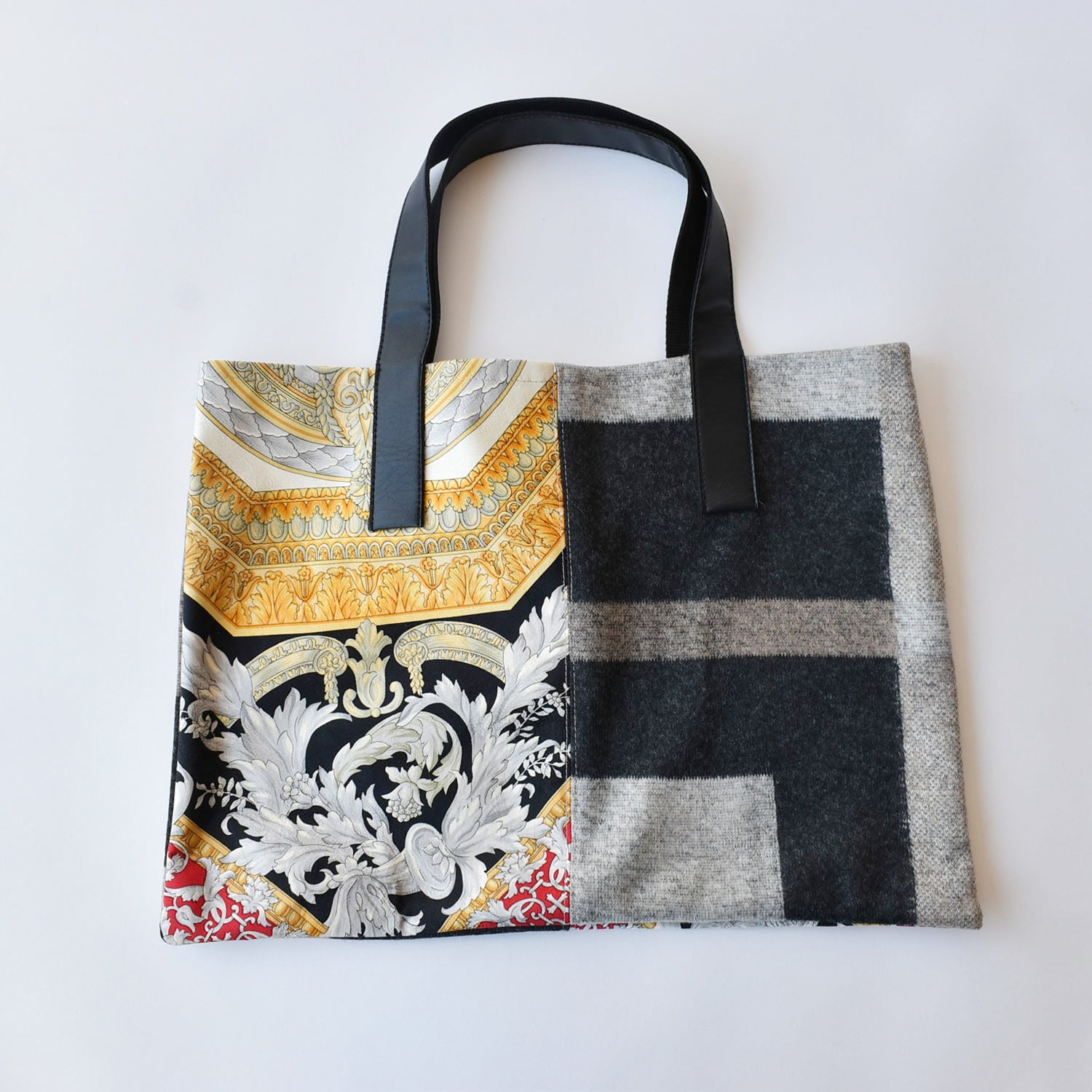 スカーフと異素材でお作りした、福袋限定トートバッグ。