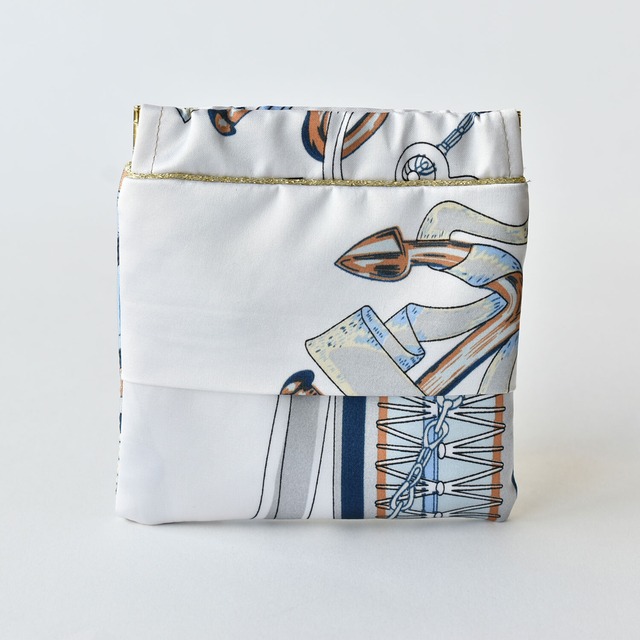 スカーフをリメイクしたティッシュポーチ。