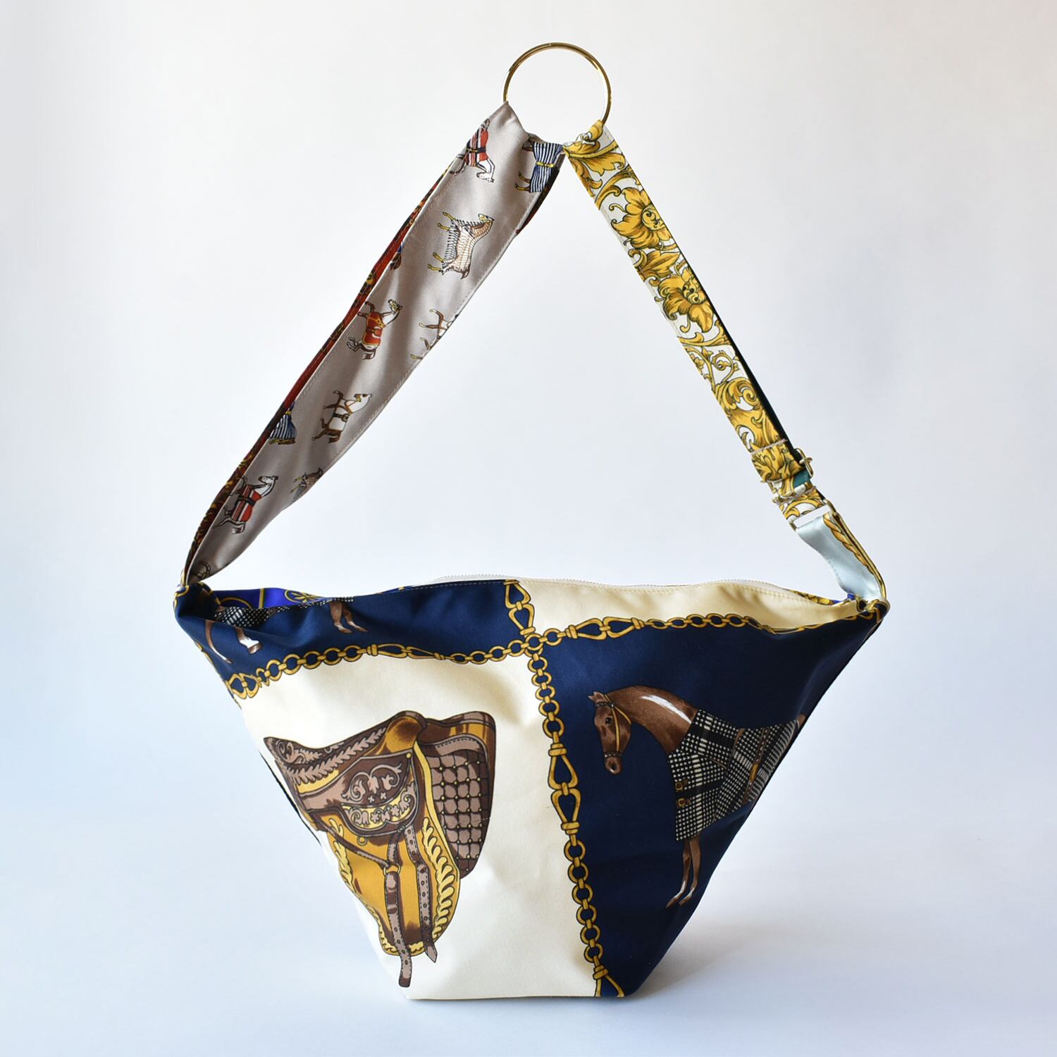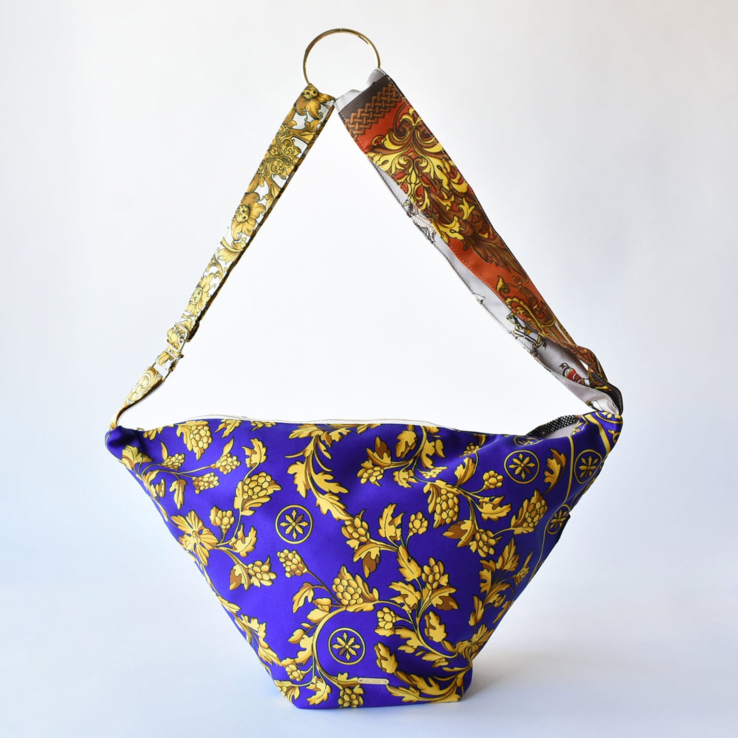手持ちにした際に「クシュ」っとなる形がキュートでスカーフ素材の柔らかさも楽しんで頂けます。