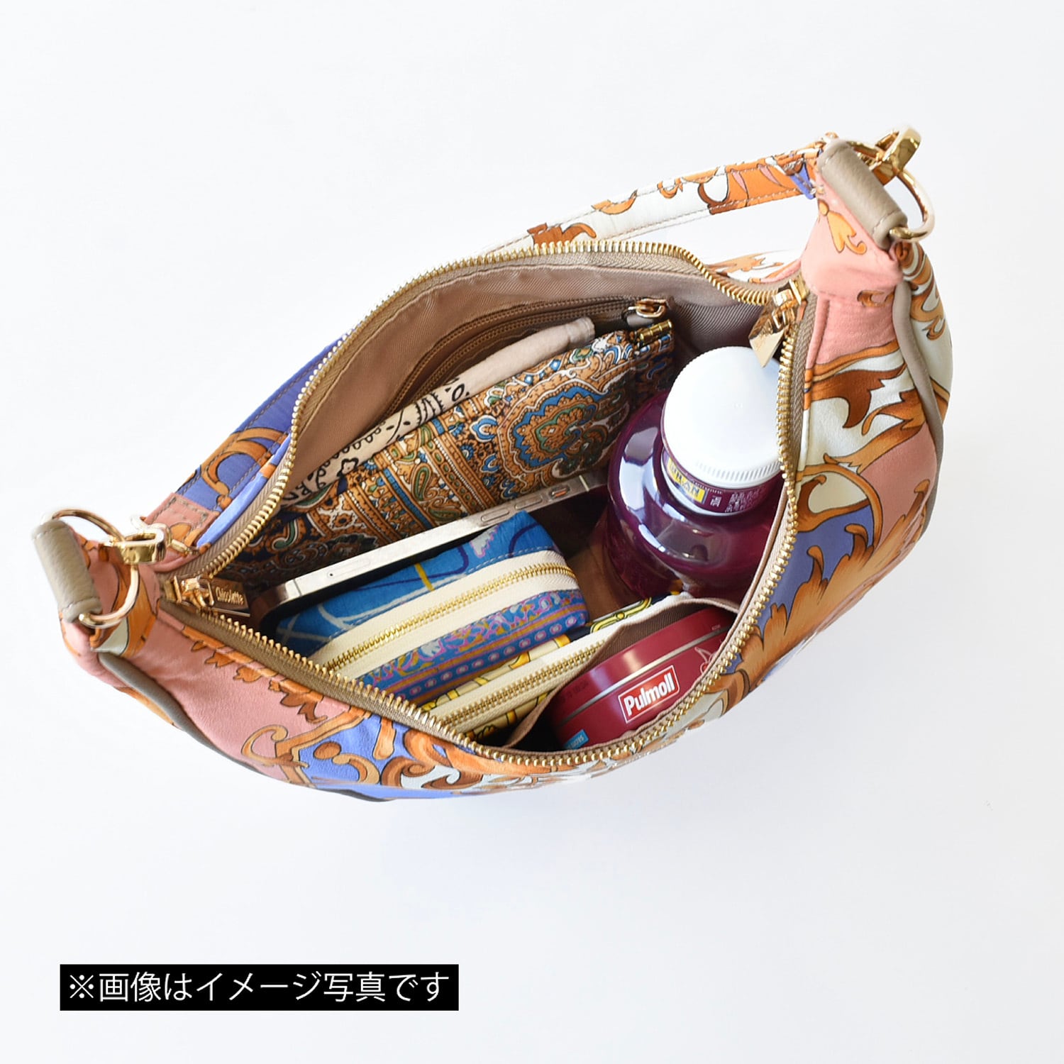 ほどよい収納力を備えた使い勝手のいい三日月型のボディに、2種類のストラップでどんなシーンでも使いやすいラウンドショルダー。