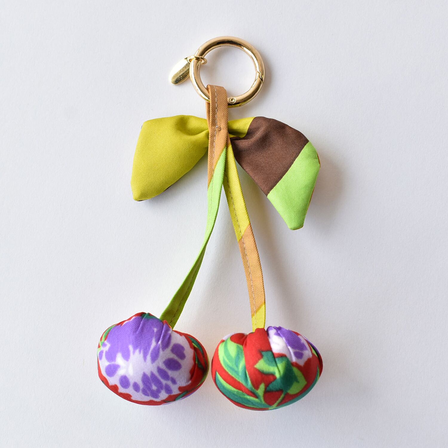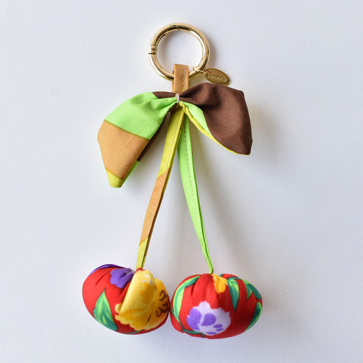 スカーフでリメイクした CHERRY(さくらんぼ)チャーム。