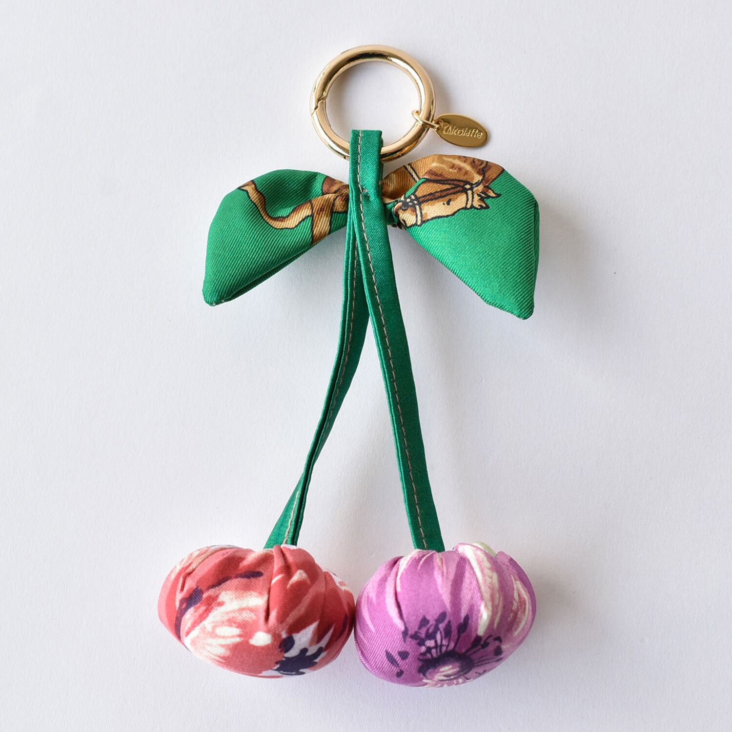 スカーフでリメイクした CHERRY(さくらんぼ)チャーム。