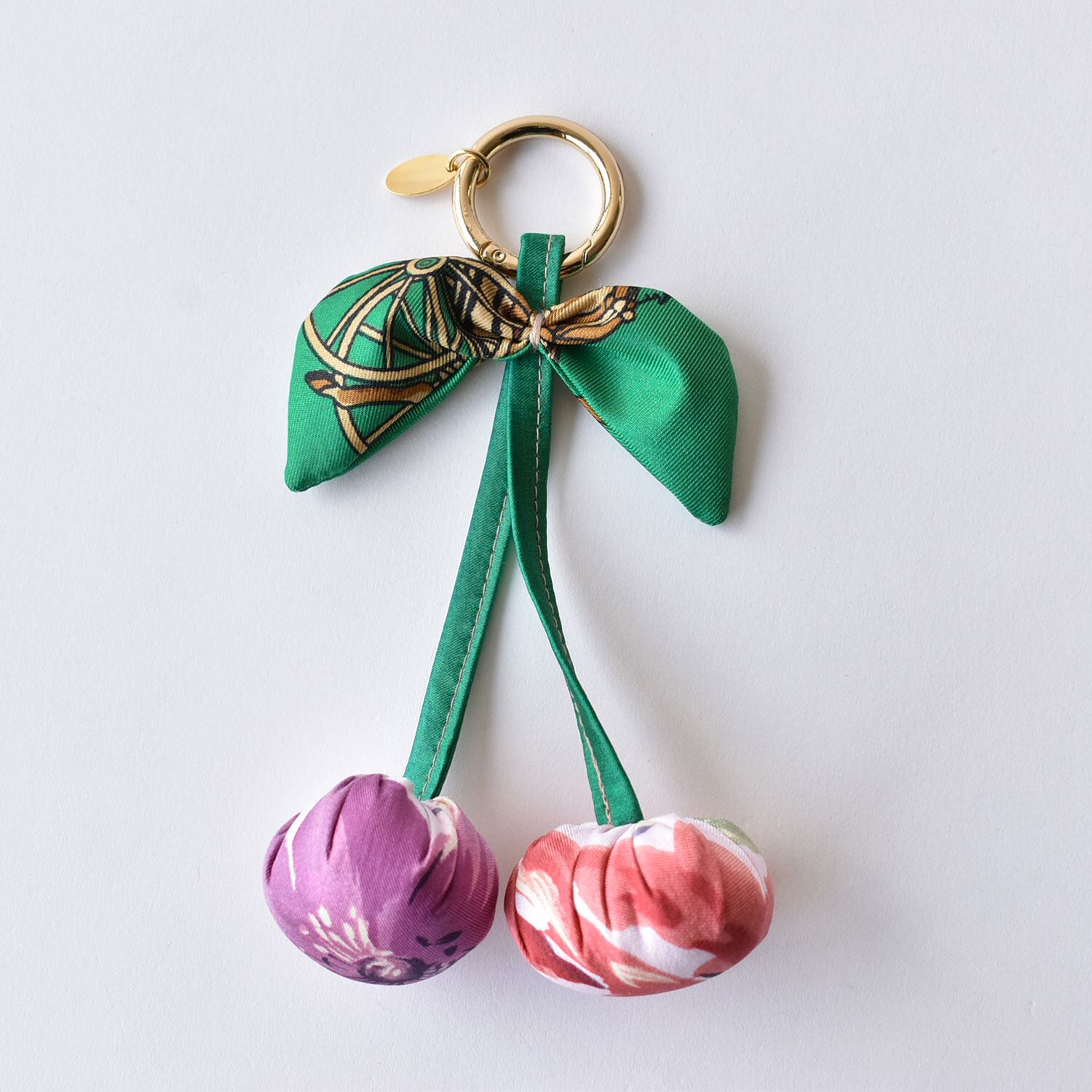 スカーフを丁寧に解体し、生まれ変わる世界にひとつのチェリーチャーム。