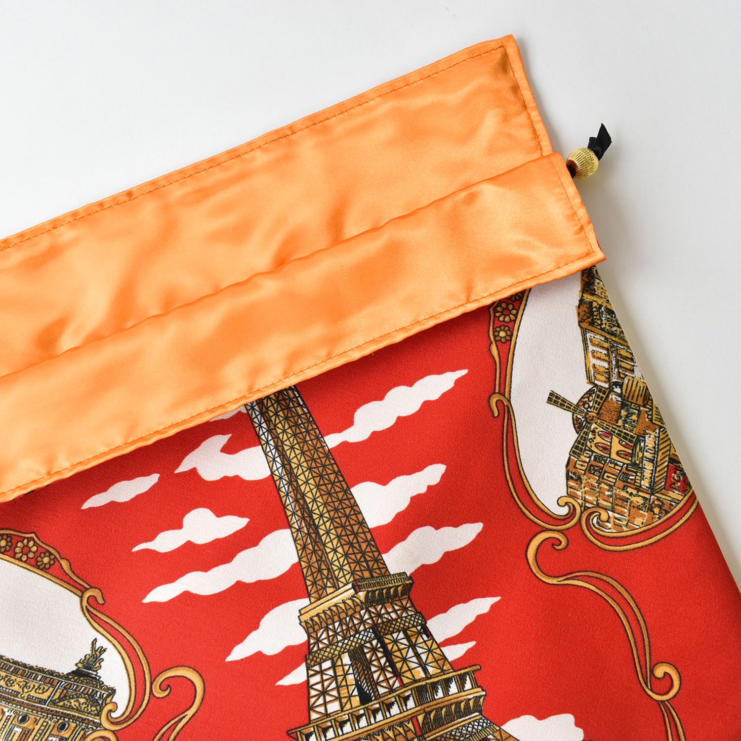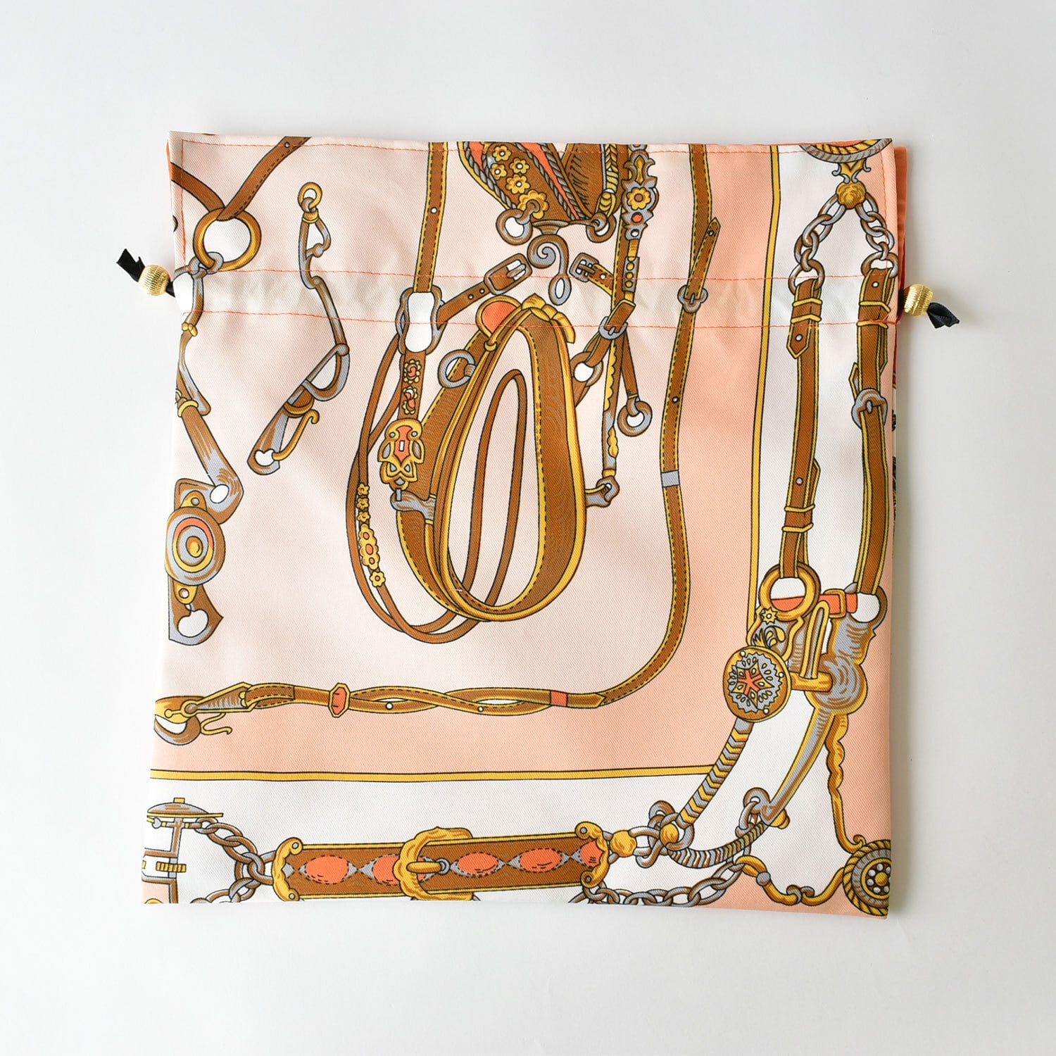 表生地は2種類のスカーフを使用しており、スカーフの切替が楽しい一点もの巾着。