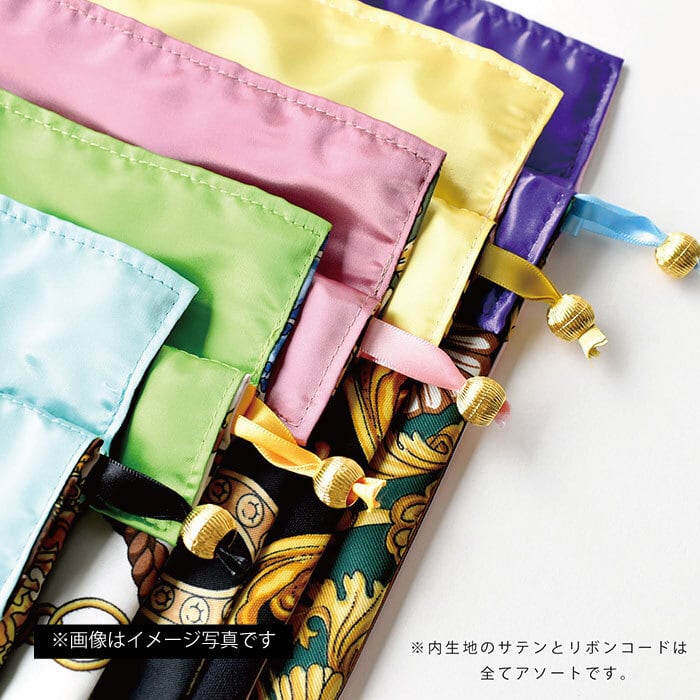 内生地には色鮮やかなサテン生地をアソートで合わせて、チラッと覗く光沢感が目を惹きます。