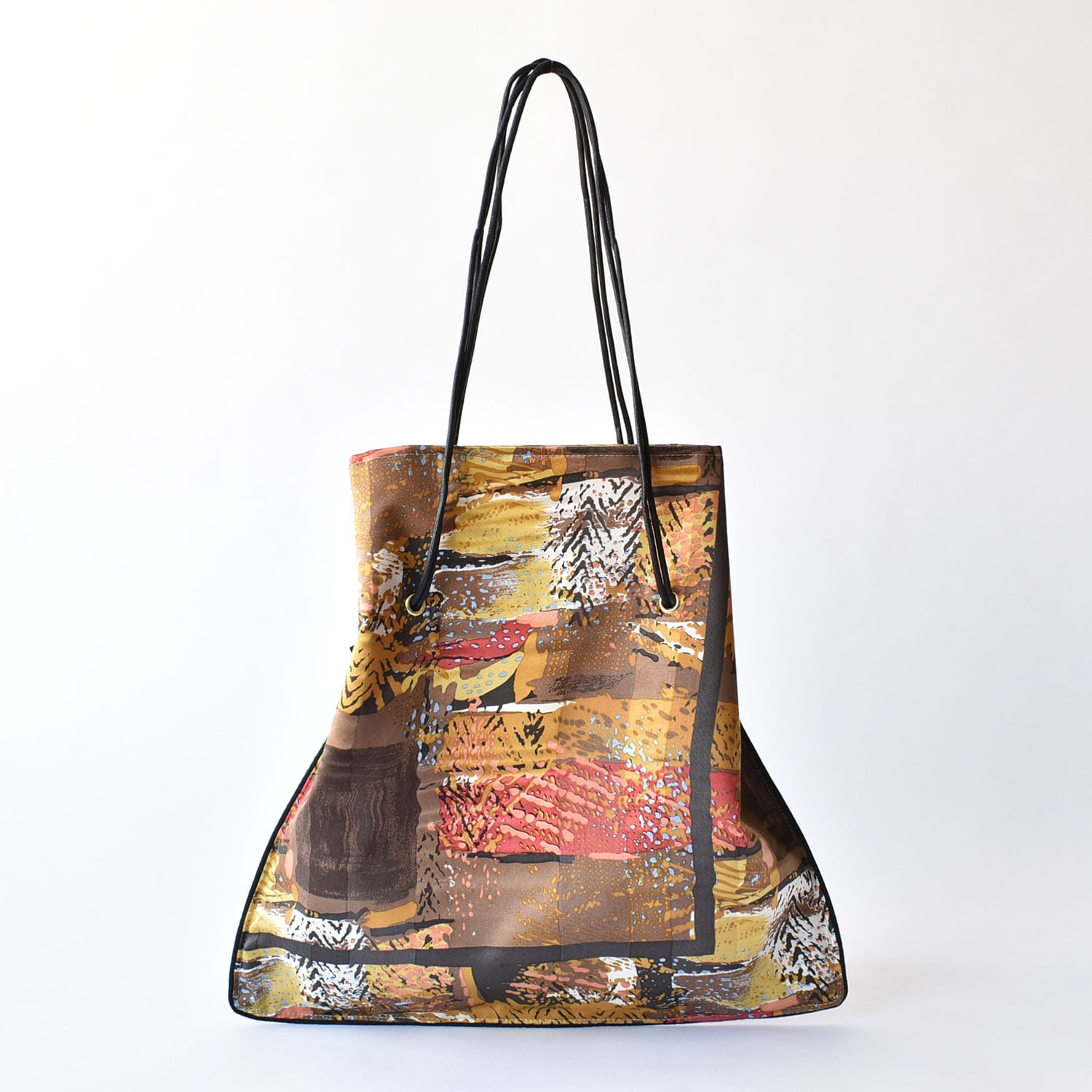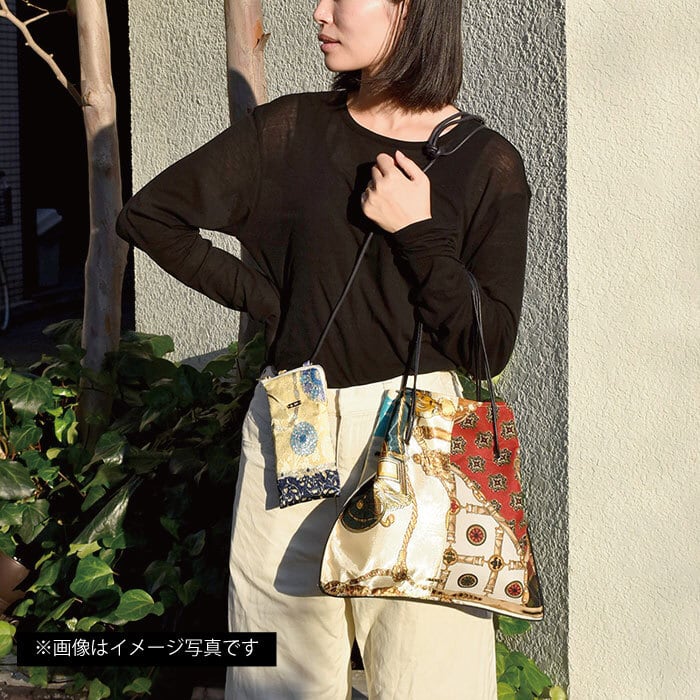スカーフを贅沢にリメイクバッグした一点ものバッグ。