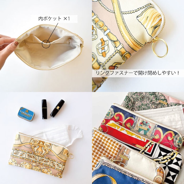 マスクも収納可能なマルチに大活躍のフラット型ポーチ。