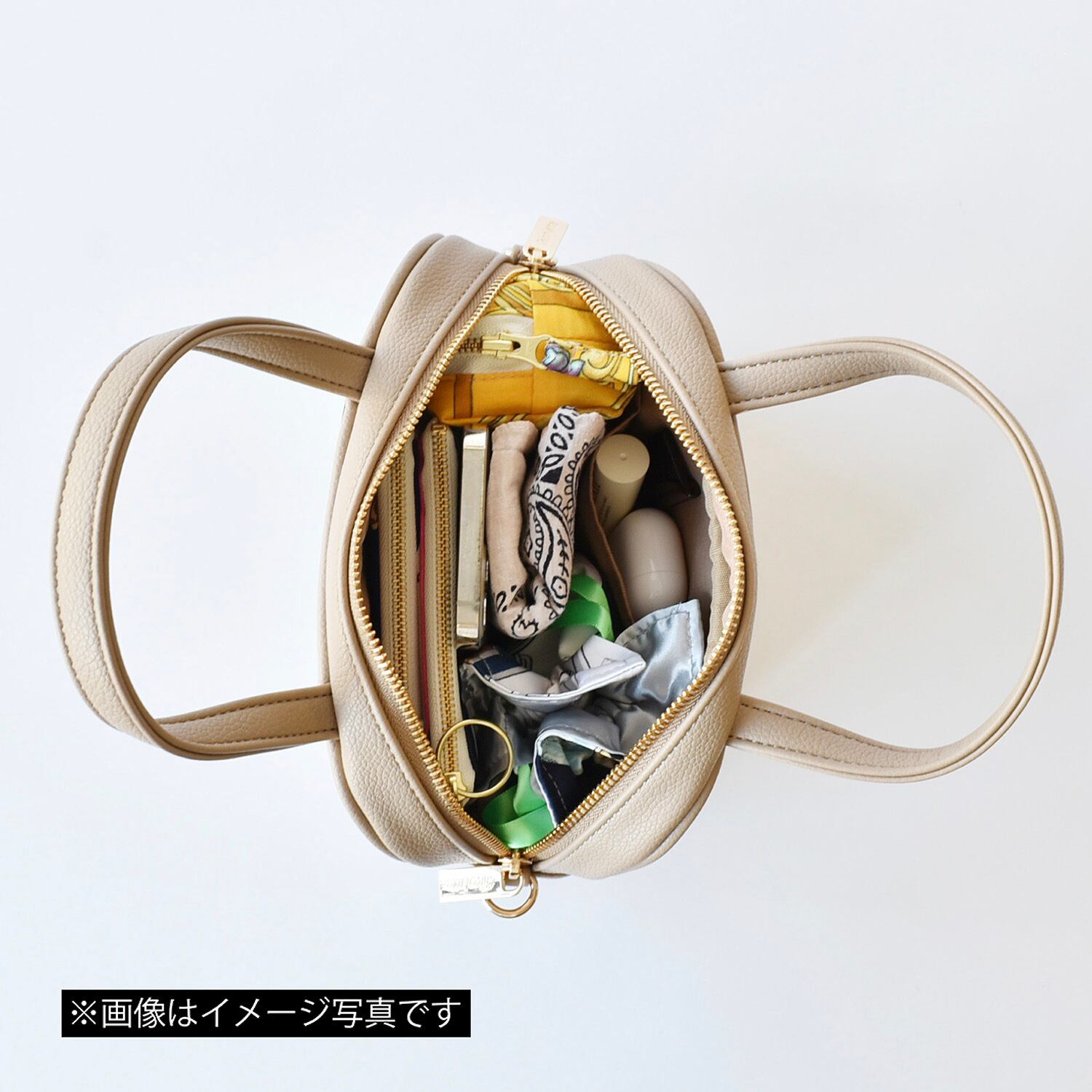 コロンとしたシルエットが可愛らしく、ポーチのような見た目ですが、バッグとして日常使いできる容量が自慢のバッグ。財布や化粧ポーチ、500mlペットボトルまで入るので、