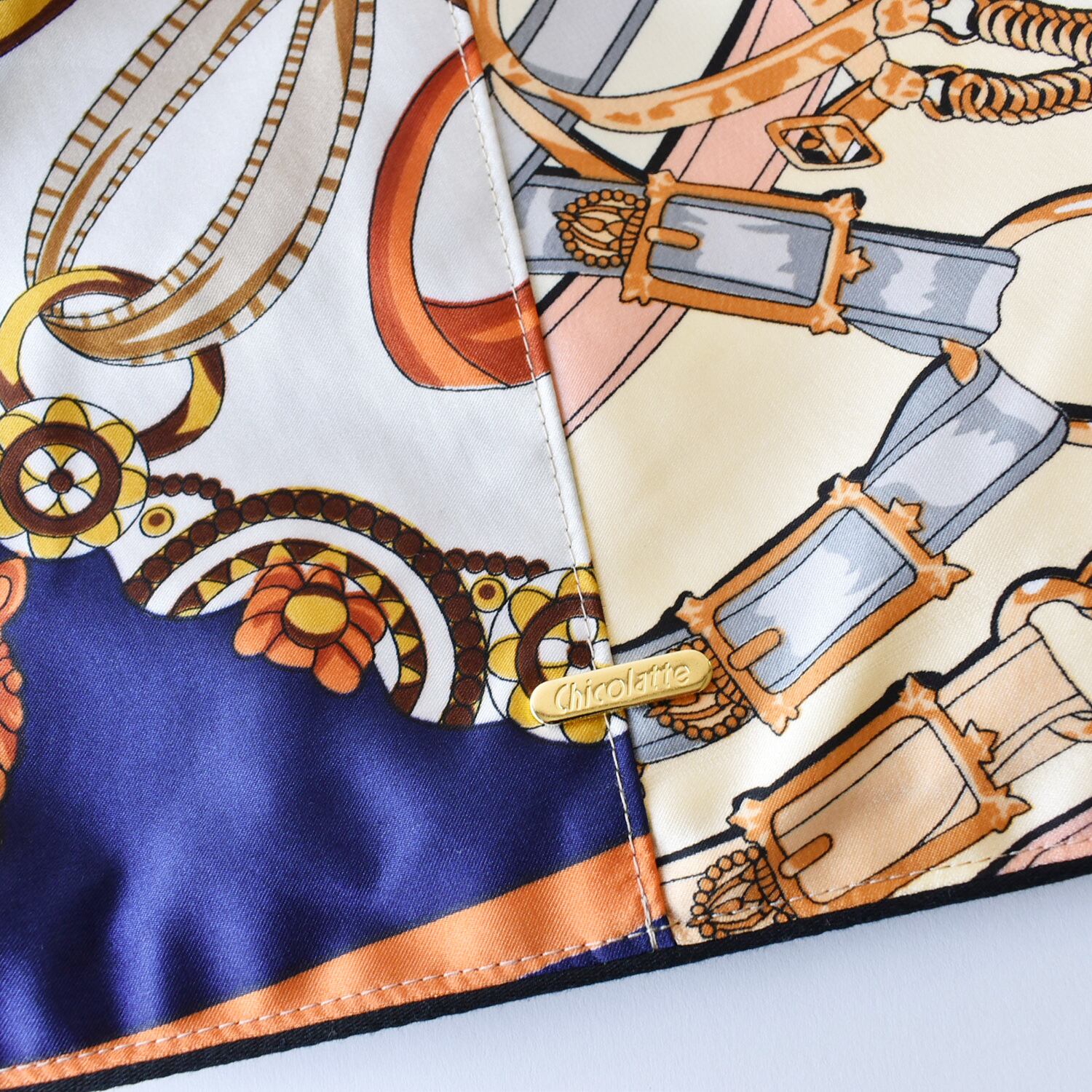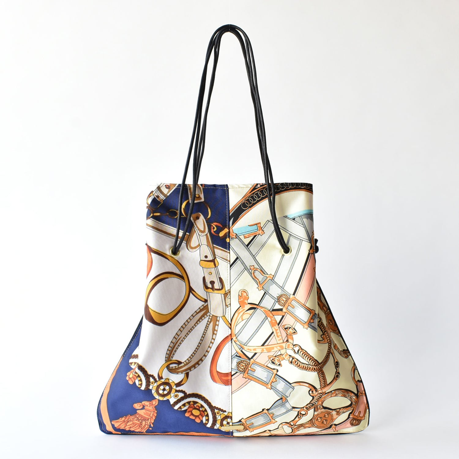 スカーフを贅沢にリメイクバッグした一点ものバッグ。