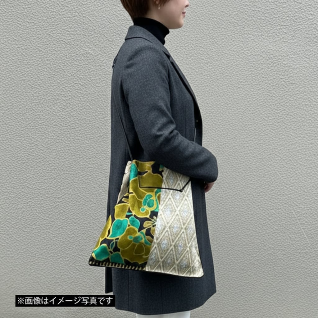 「A one-of-a-kind bag remade from scarves and Japanese textiles.」 A truly unique design, combining various patterns and color schemes. Perfect for a lighthearted, adult casual style. Adds a touch of effortless style to your casual look.