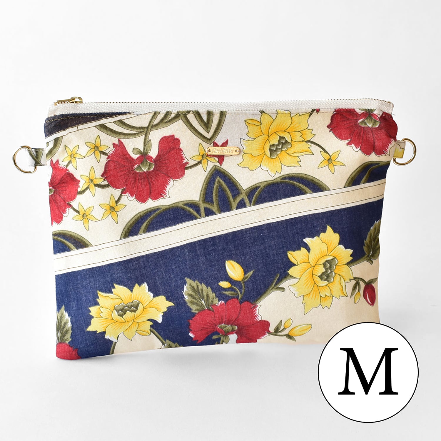 A classic flat pouch crafted from recycled scarves and Japanese textiles.