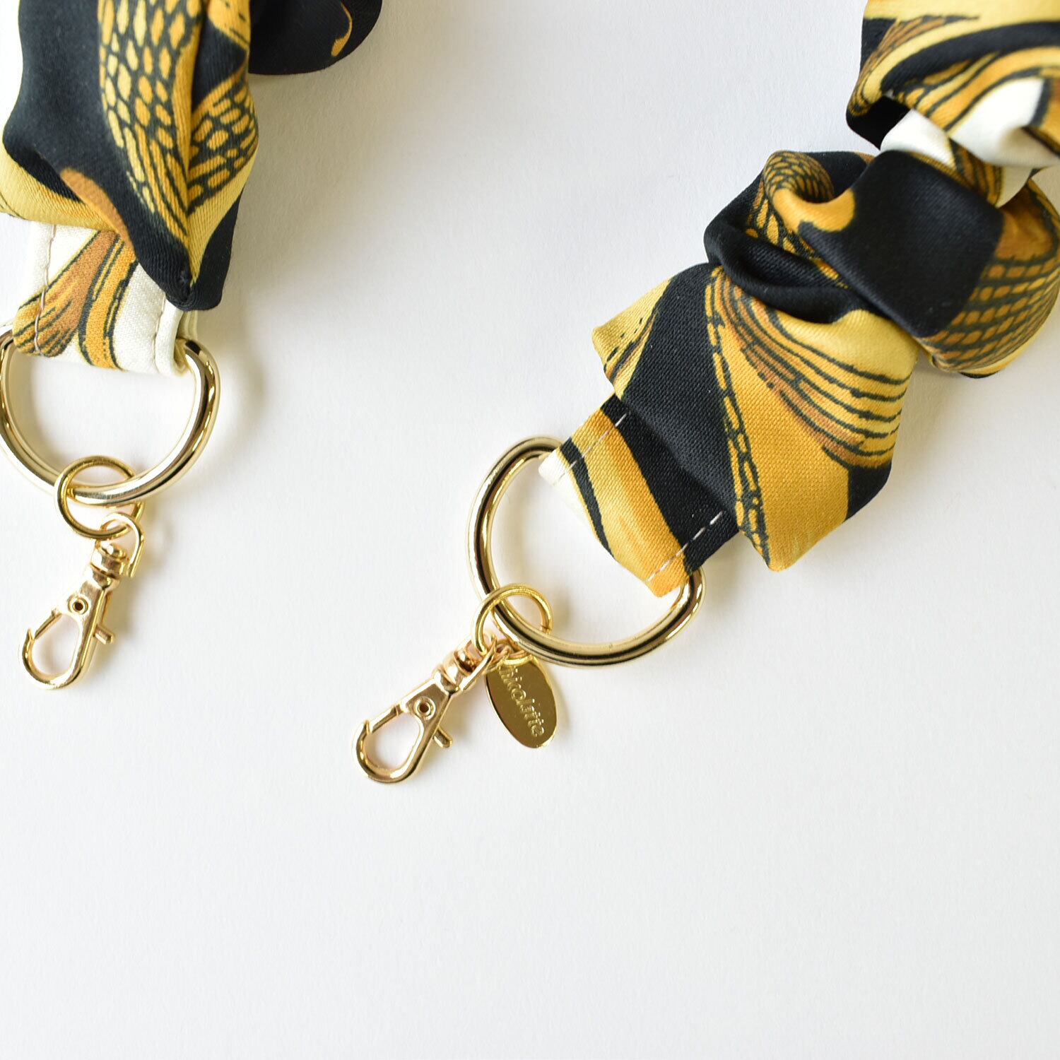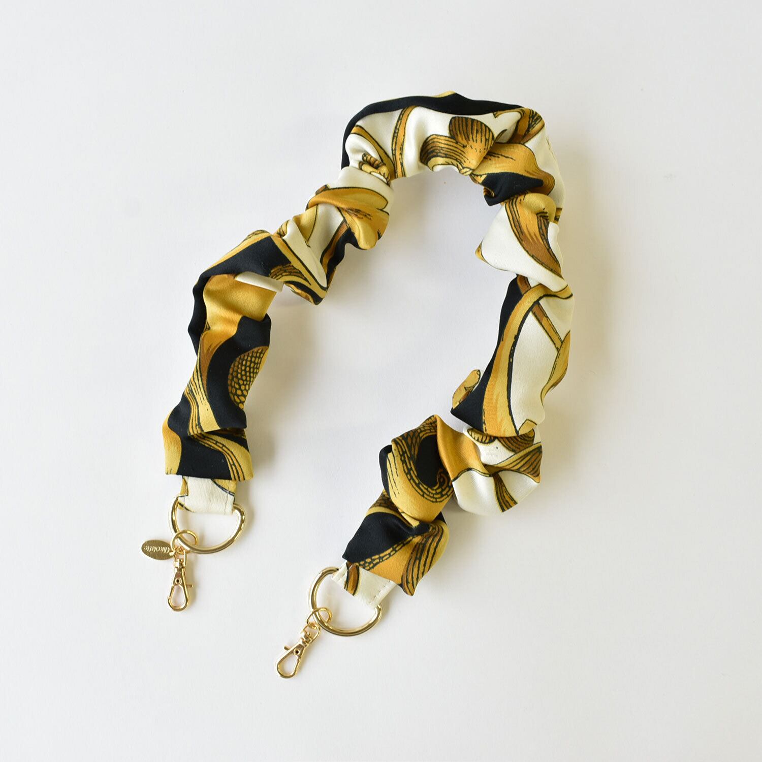 スカーフの光沢感が映える、大人可愛いスマホストラップ。