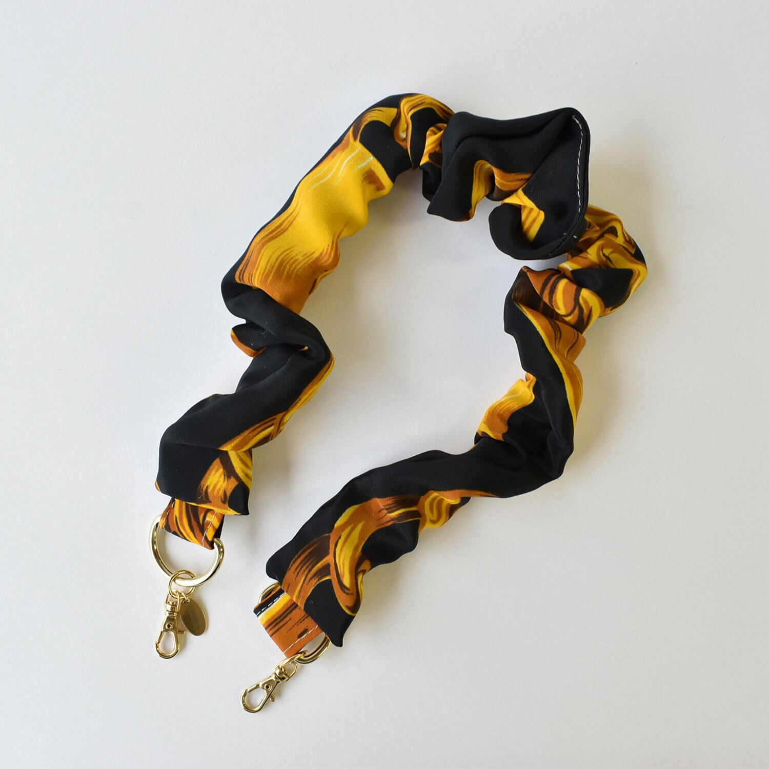 スカーフの光沢感が映える、大人可愛いスマホストラップ。