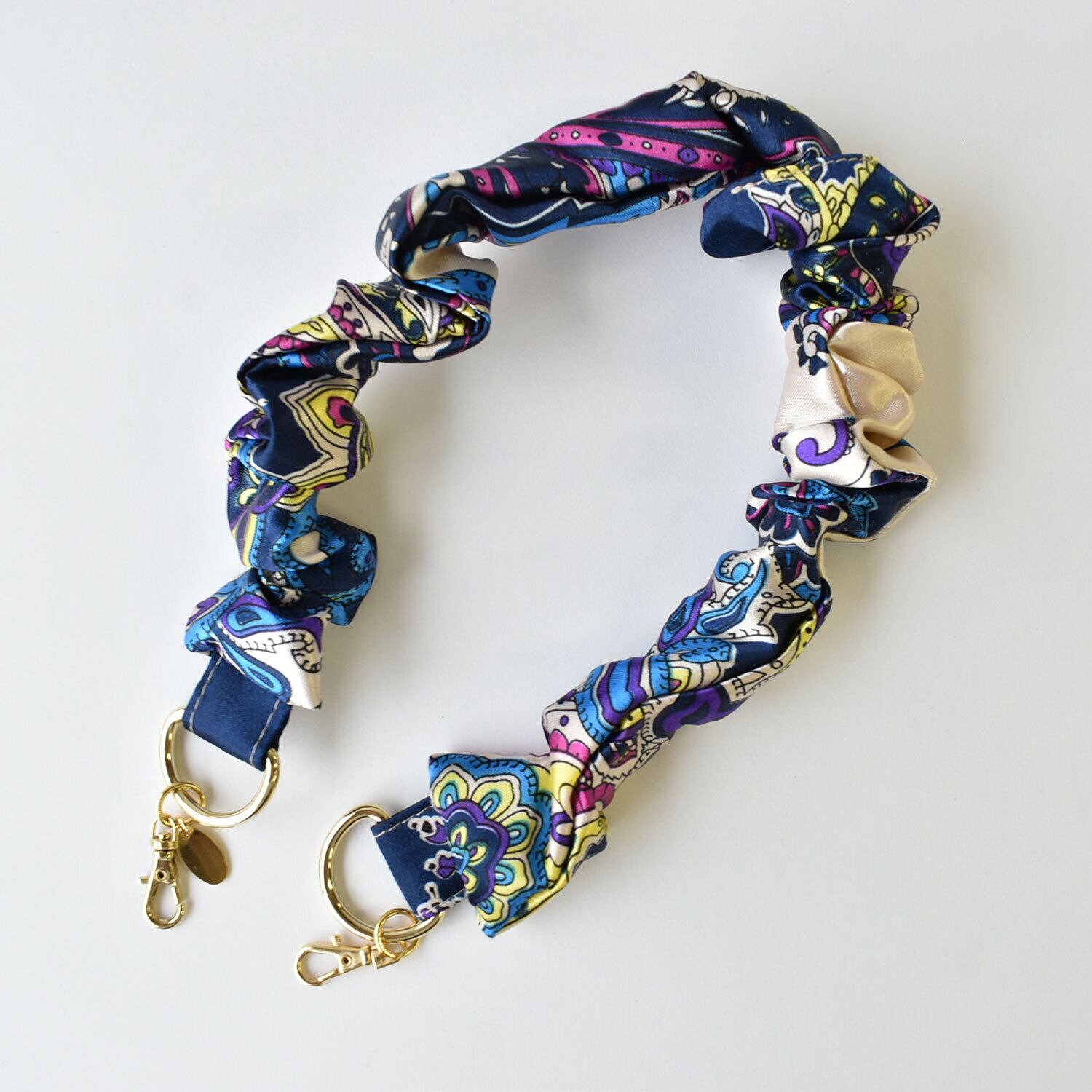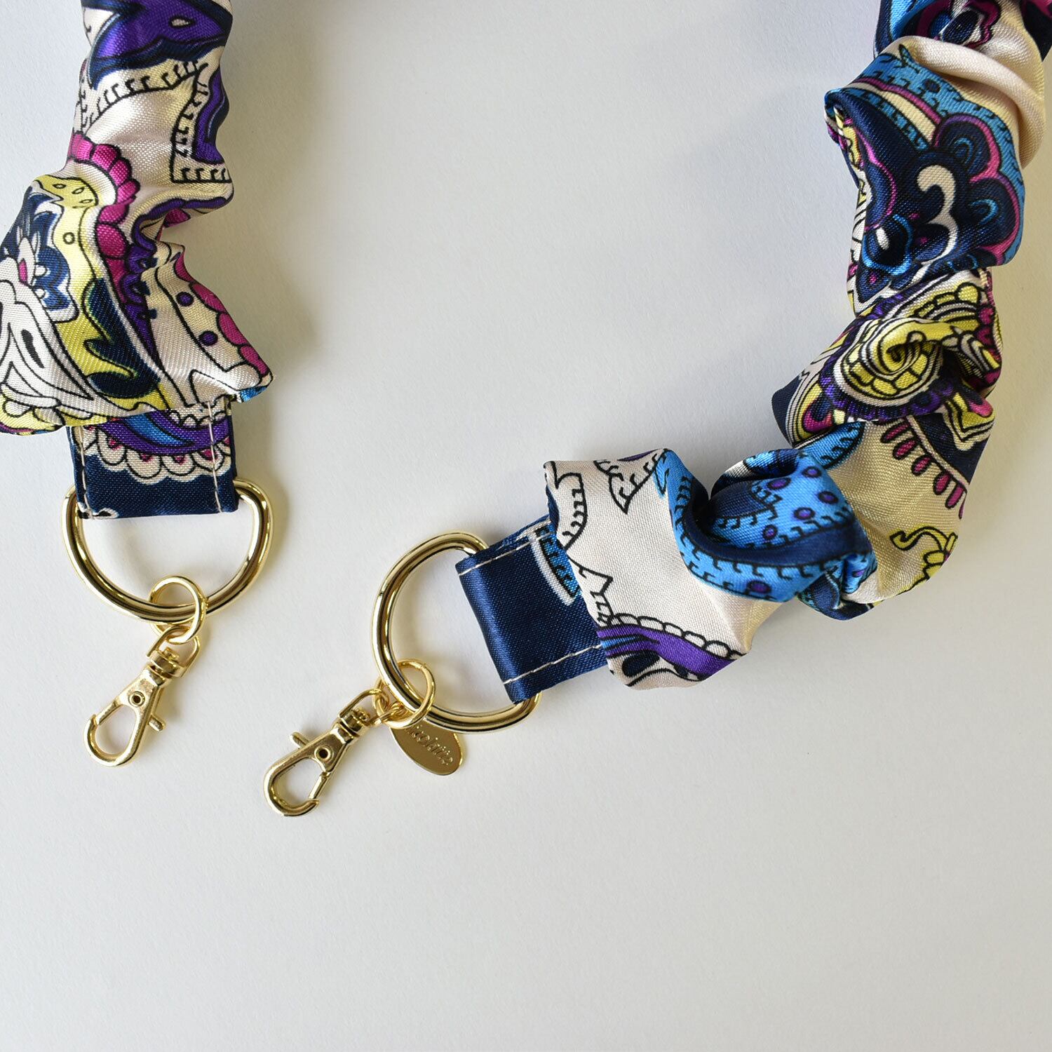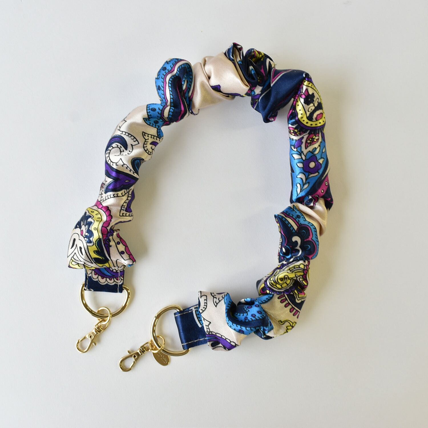 スカーフの光沢感が映える、大人可愛いスマホストラップ。
