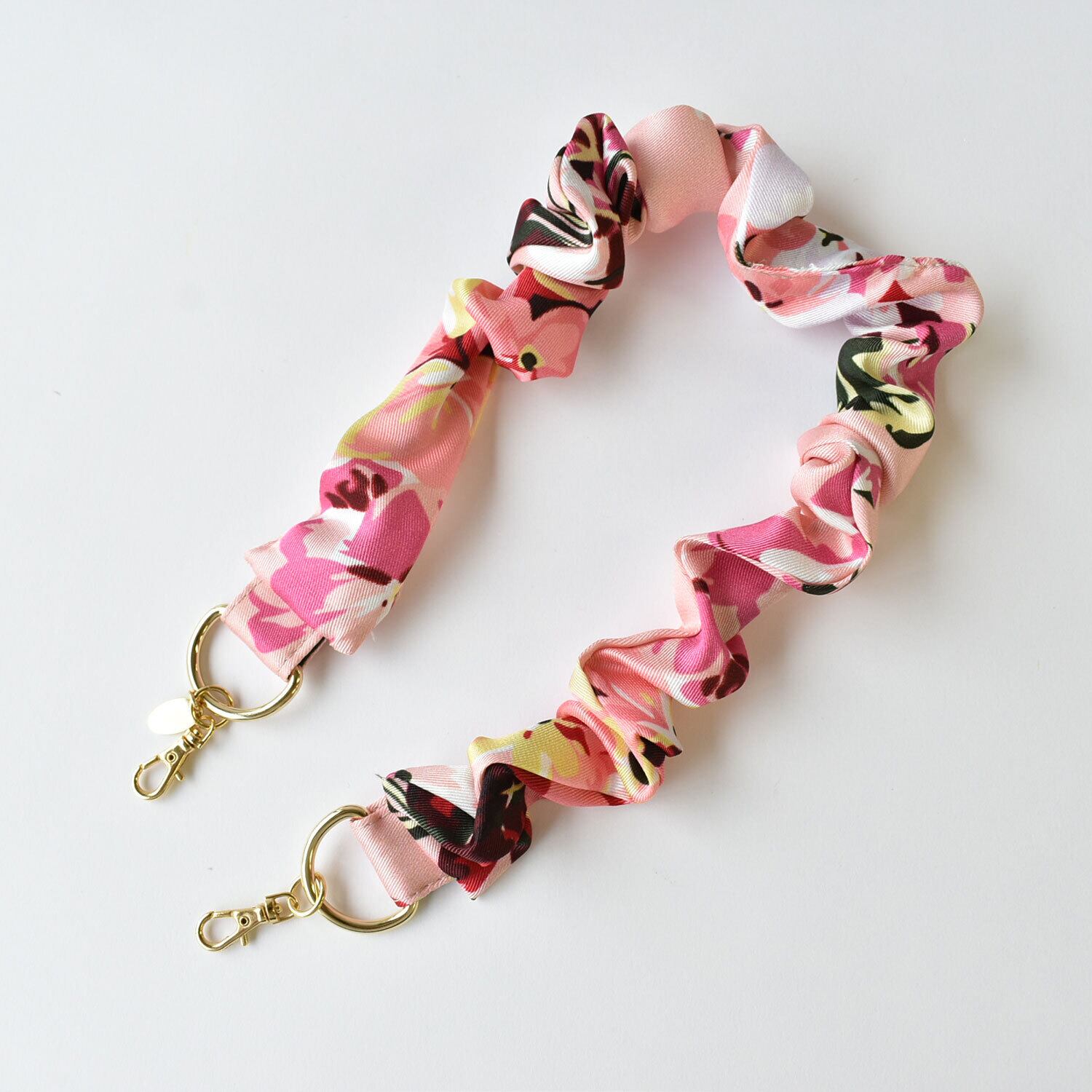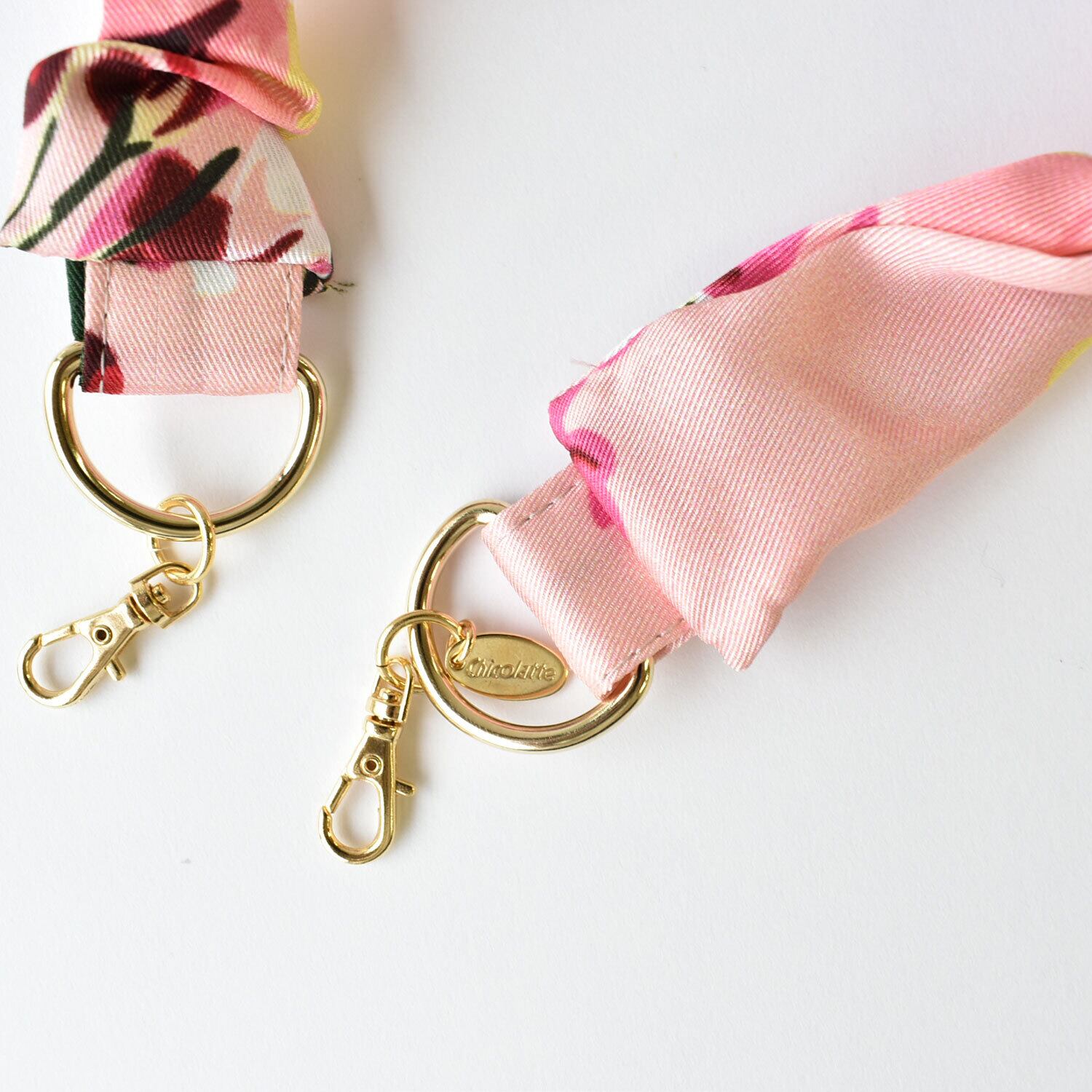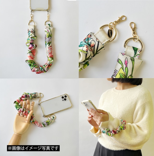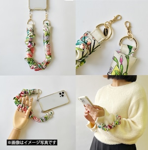 スカーフの光沢感が映える、大人可愛いスマホストラップ。