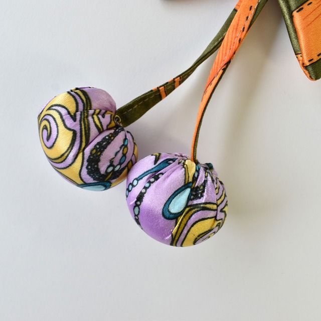 スカーフでリメイクした CHERRY(さくらんぼ)チャーム。