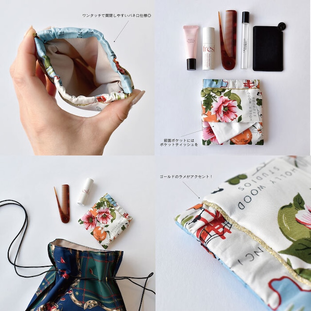 リップなどの小物が収納可能なティッシュポーチ。