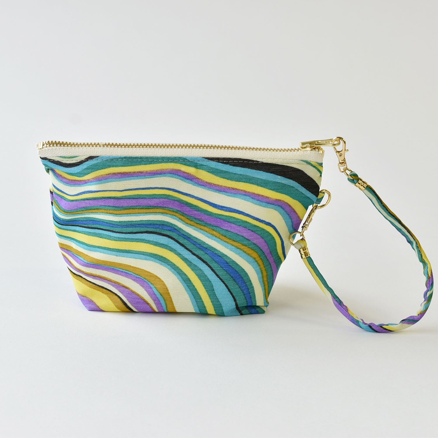 ストラップ付きのマチ付きポーチ。