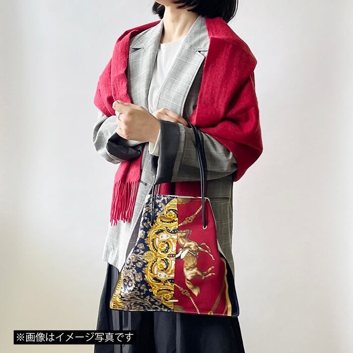 スカーフを贅沢にリメイクバッグした一点ものバッグ。