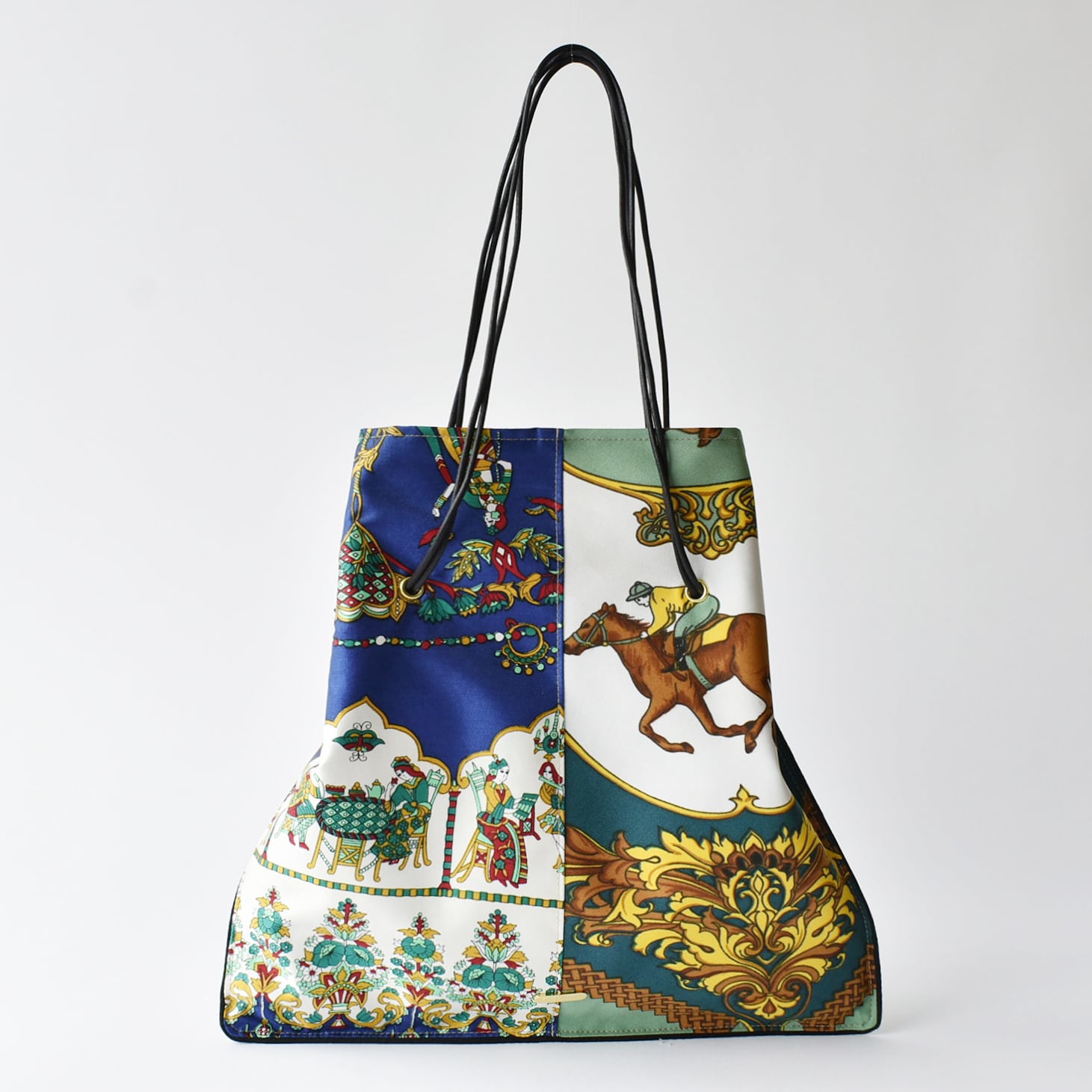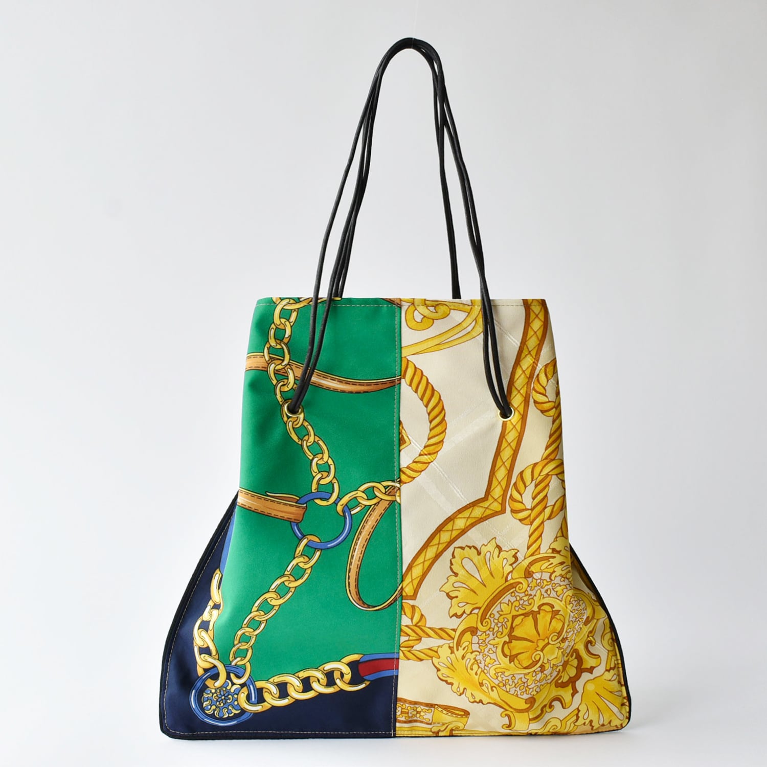 スカーフを贅沢にリメイクバッグした一点ものバッグ。