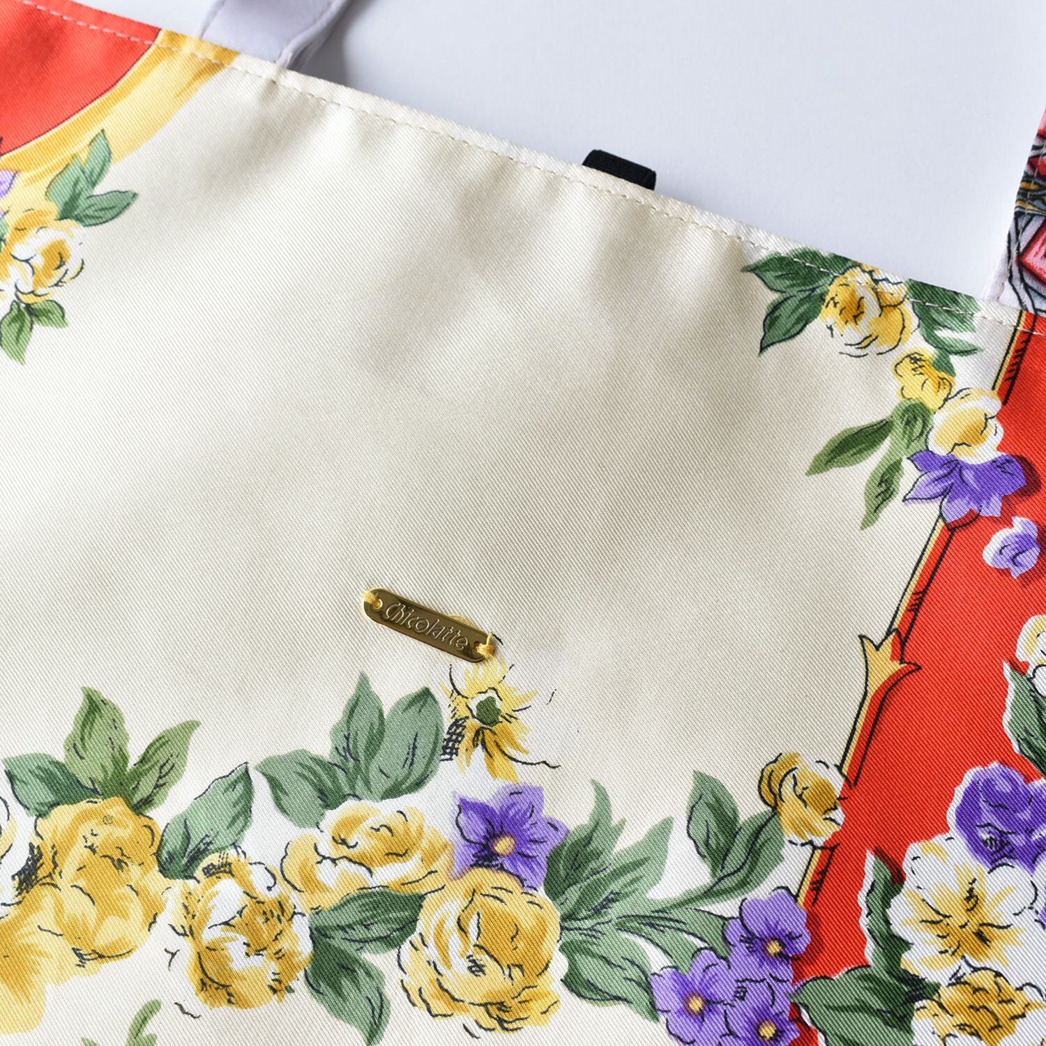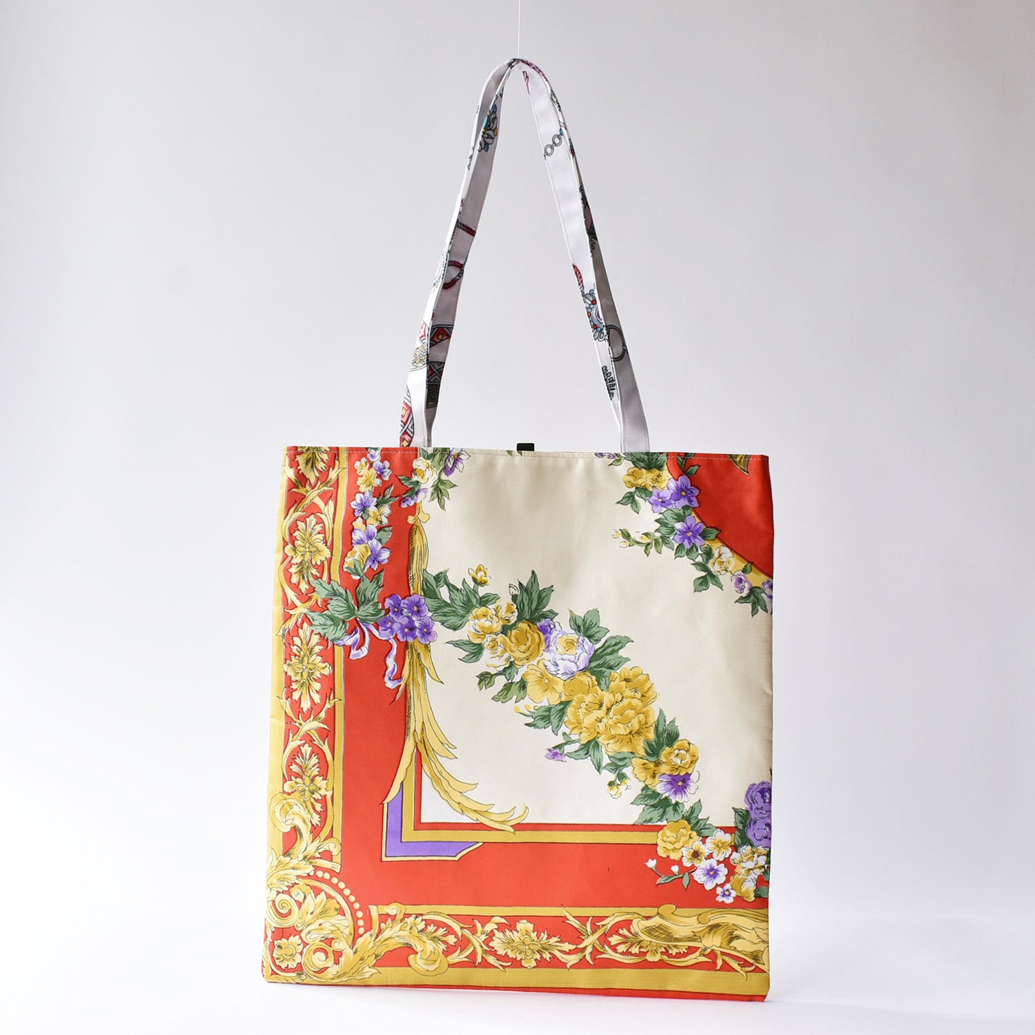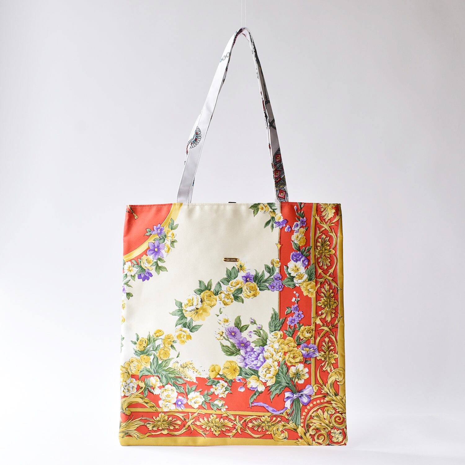 スカーフ裏に柔らかい芯地を合わせて折畳しやすいタイプのトートバッグとなります。