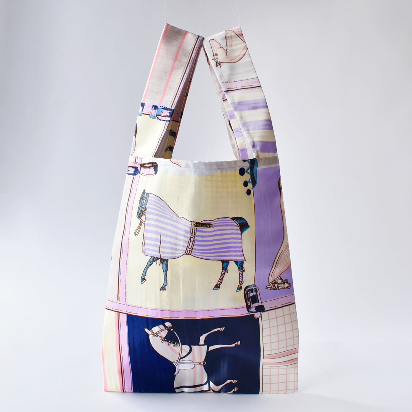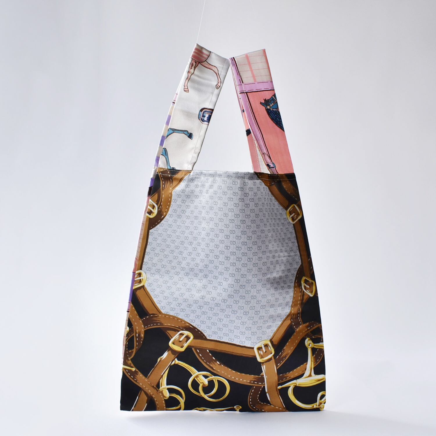 片方の持ち手をもう片方の持ち手に通して持っても可愛いシルエットに。