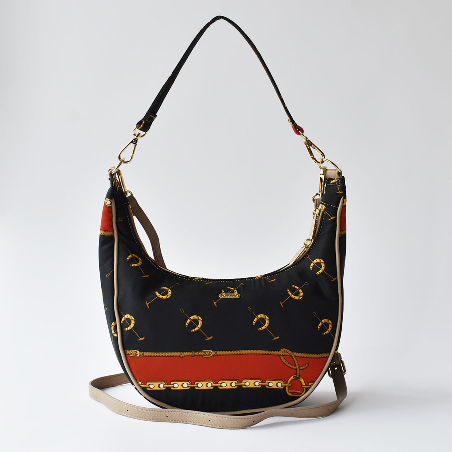 ほどよい収納力を備えた使い勝手のいい三日月型のボディに、2種類のストラップでどんなシーンでも使いやすいラウンドショルダー。