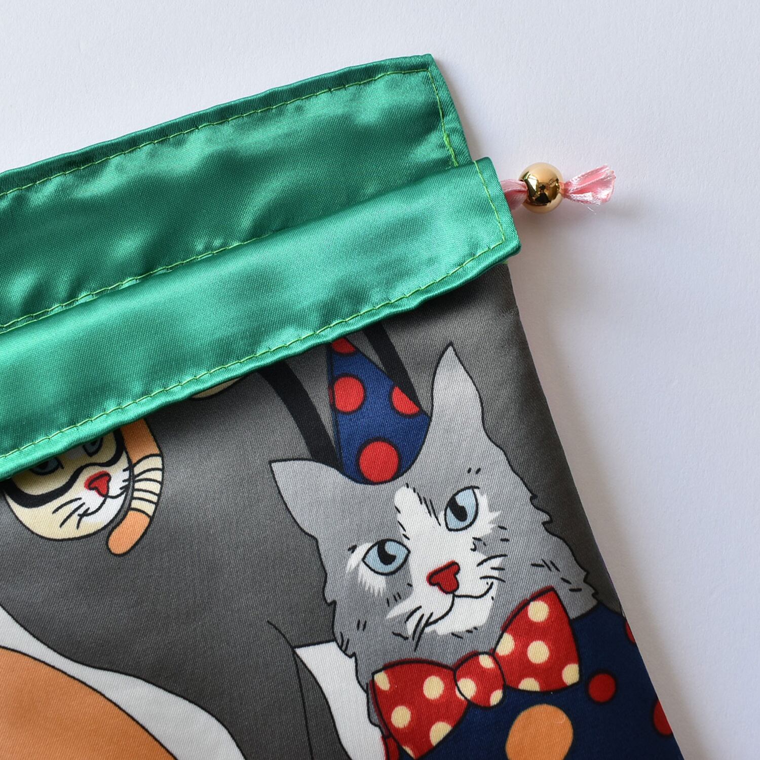 内生地には色鮮やかなサテン生地をアソートで合わせて、チラッと覗く光沢感が目を惹きます。