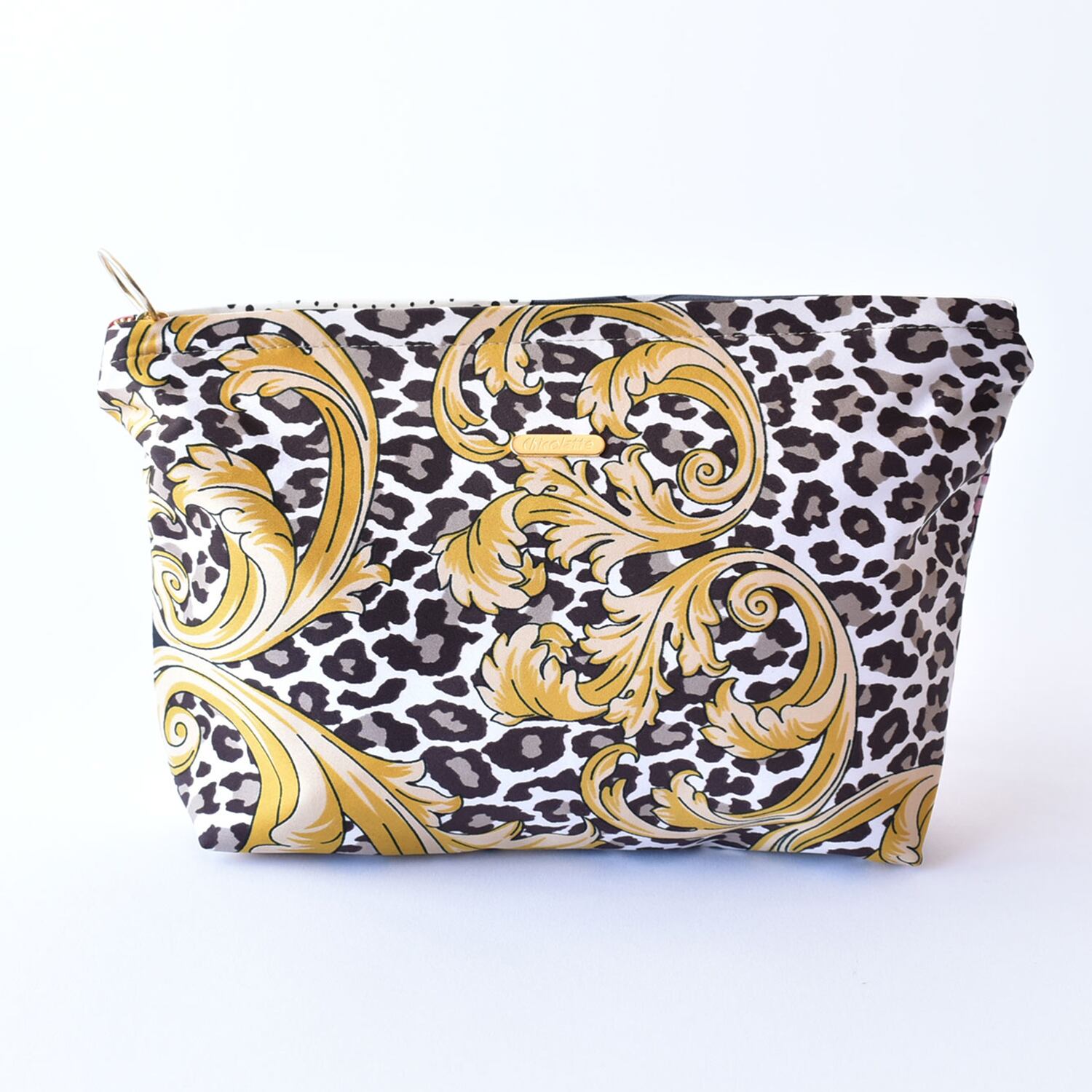 細かいものをまとめて収納できるのはもちろん、化粧水やヘアオイルなど、大きめのものも入るので、旅行時などにも役立つビッグサイズのポーチ。
