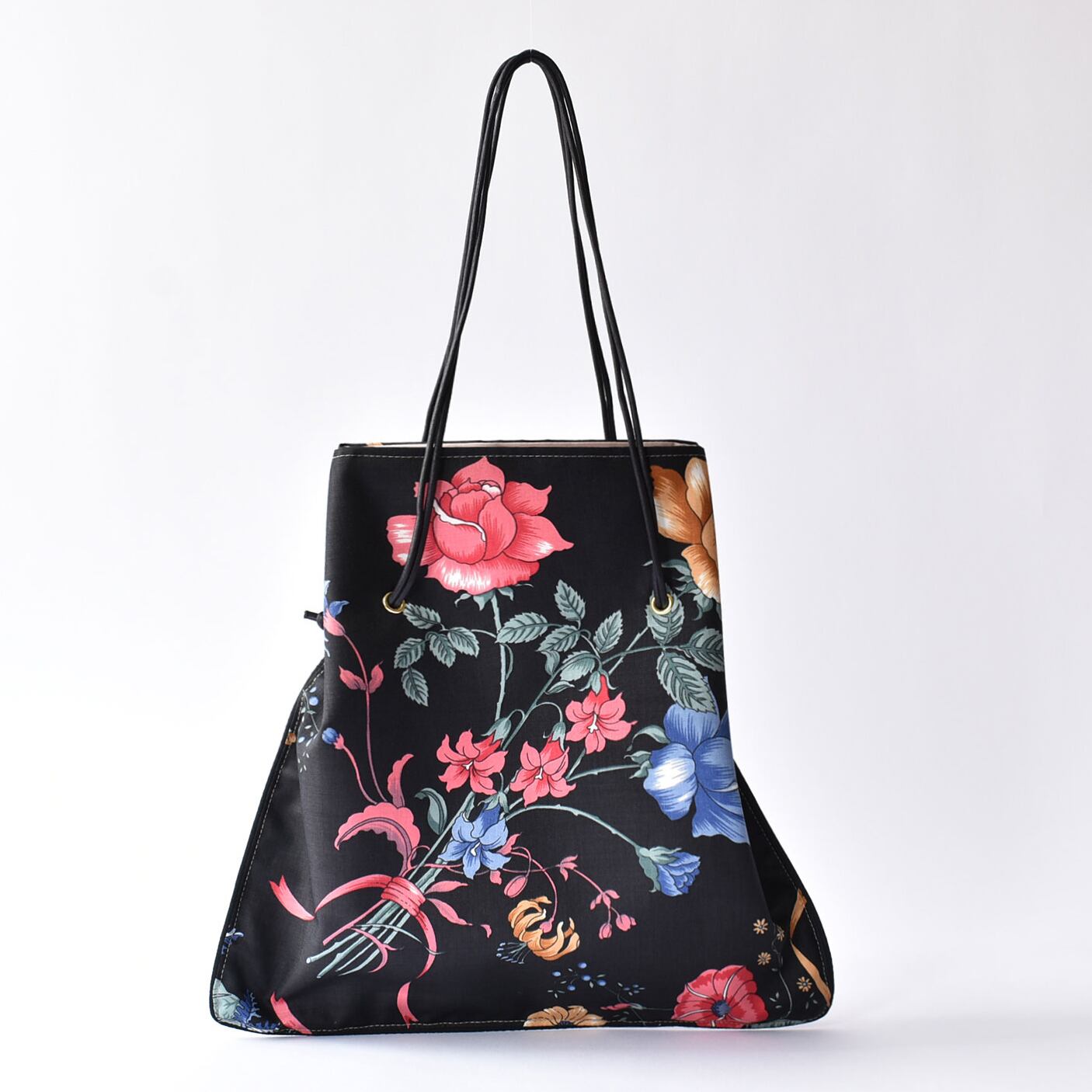 手持ちトート、ショルダーバッグ、巾着バッグとして用途にあわせて切り替えてご使用いただける3WAYバッグ。