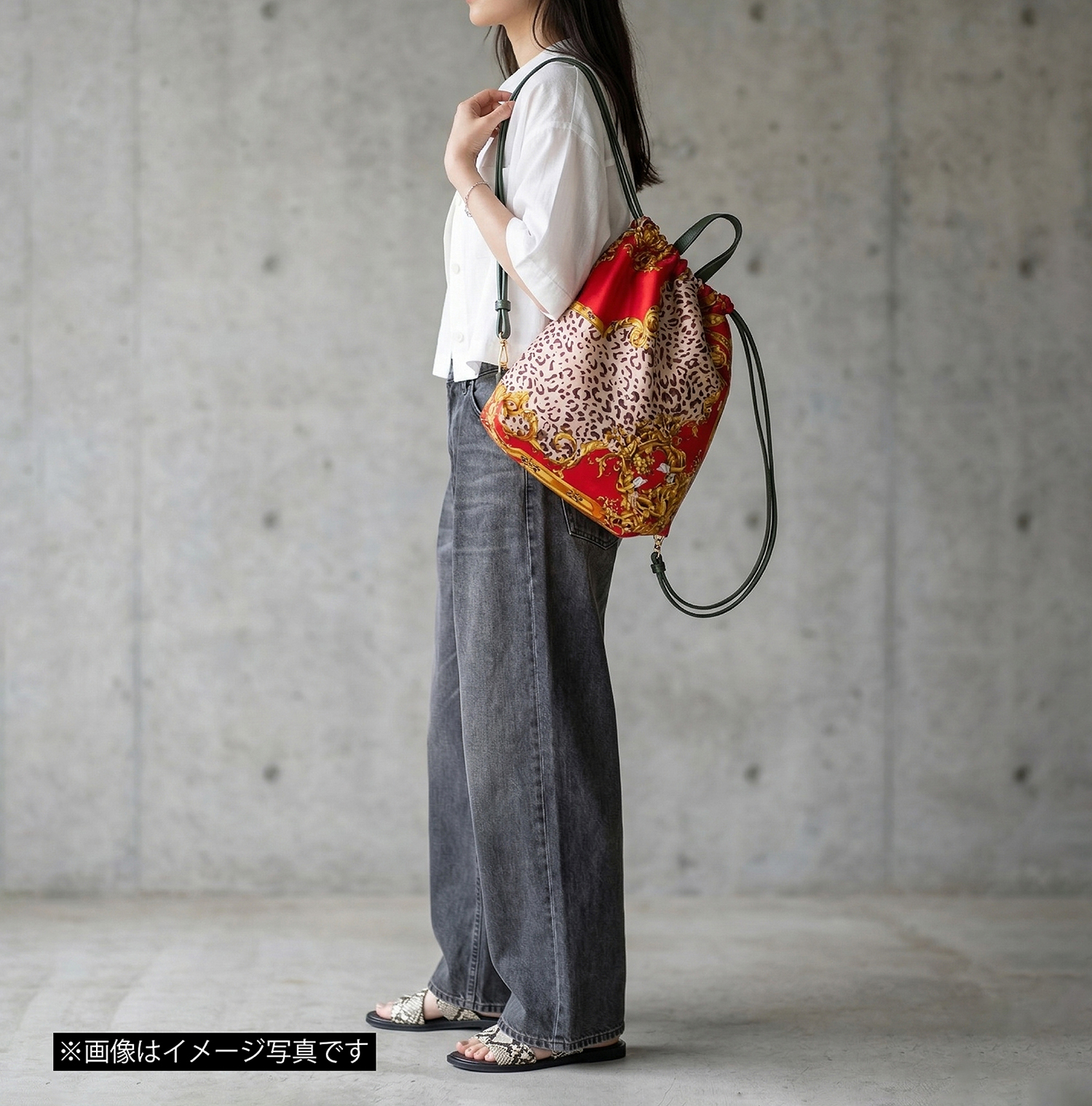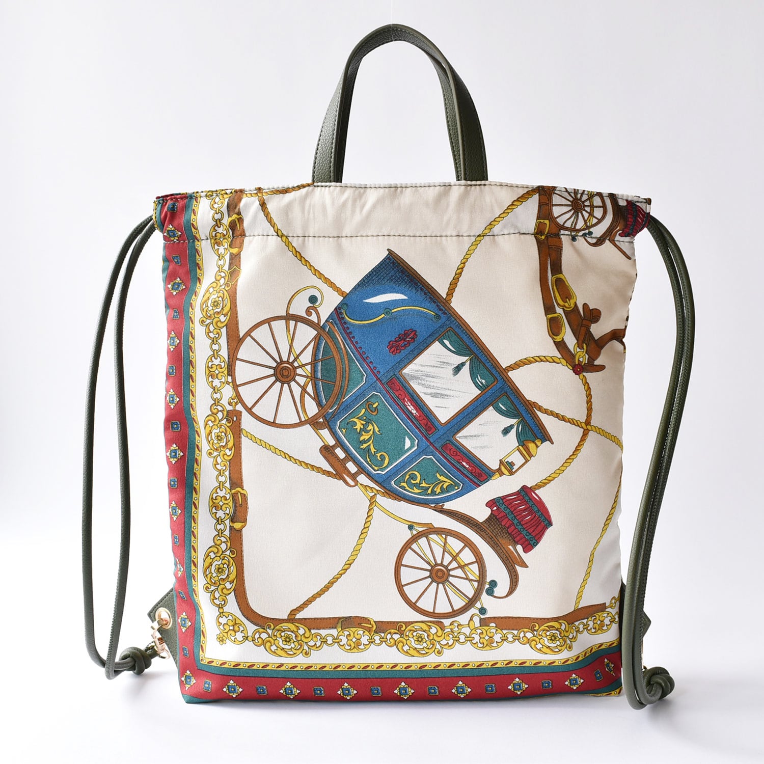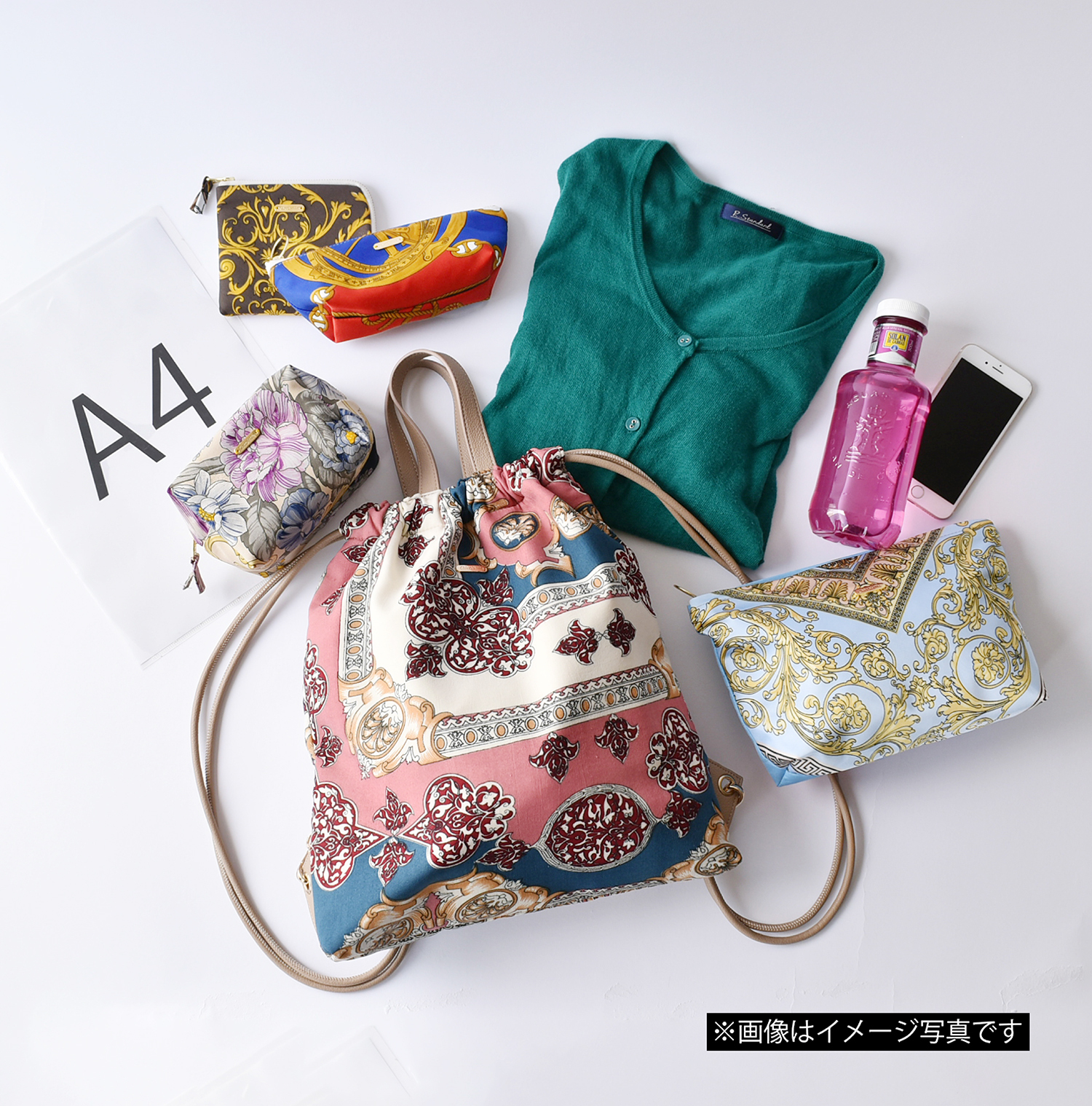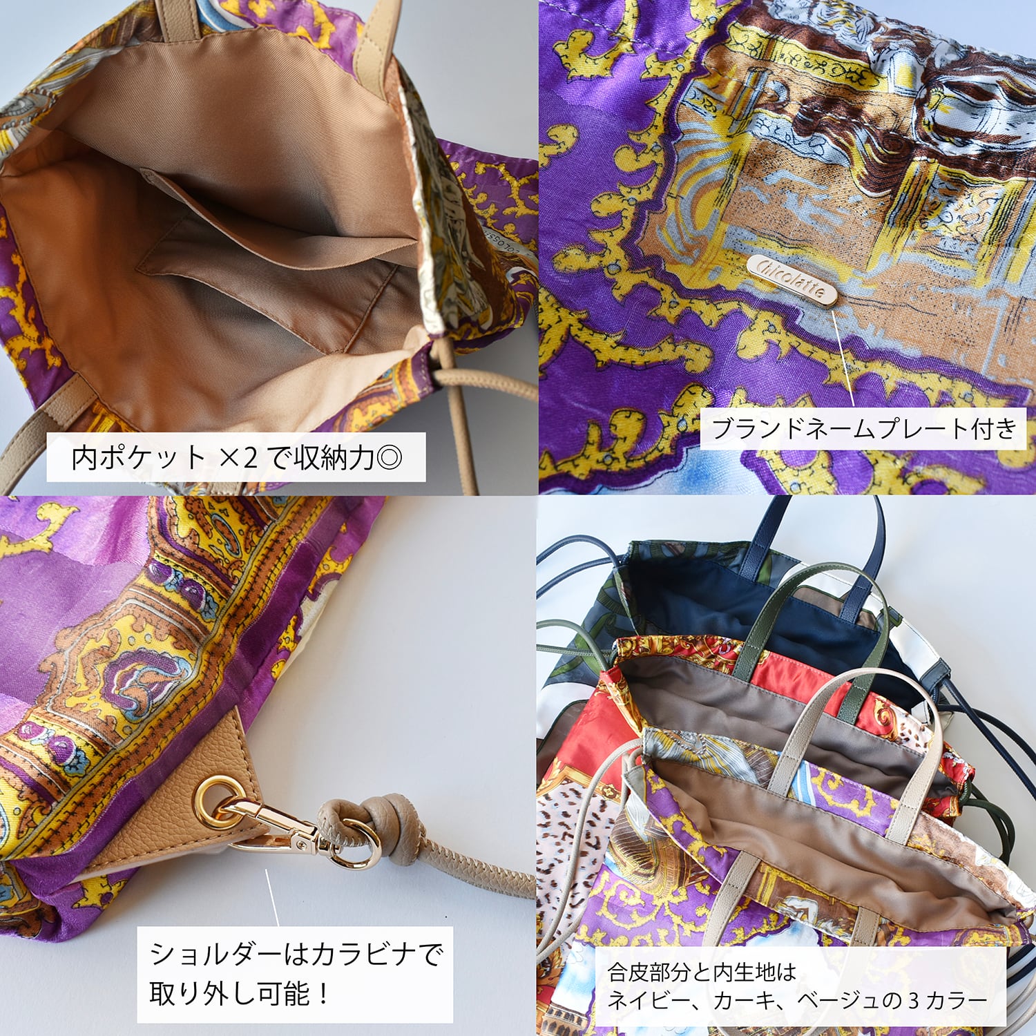 ・持ち手、コード部分はスカーフの色柄に合わせて合皮素材に