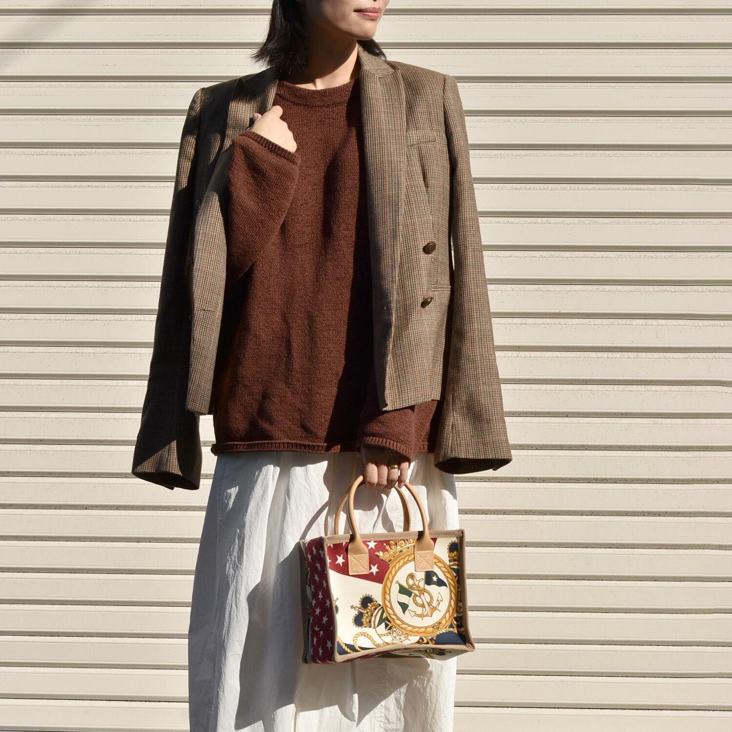 ヴィンテージスカーフをリメイクしたボックス型のバッグは