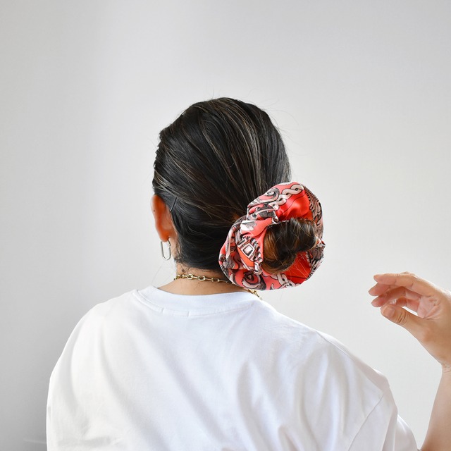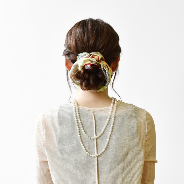シュシュは結目の根元に巻きつけるだけでとっても簡単◎