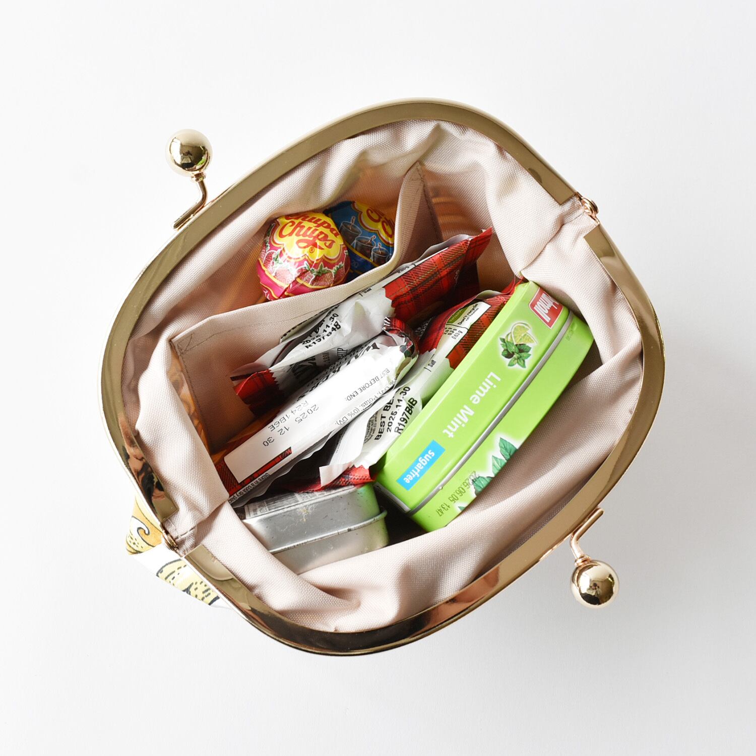 ヴィンテージスカーフをリメイクした、がま口ポーチ。